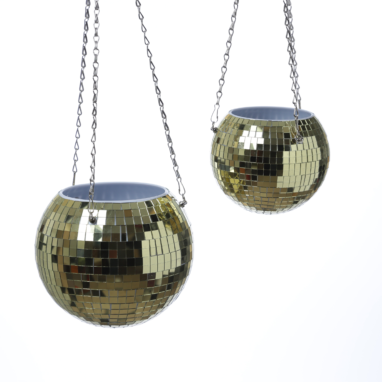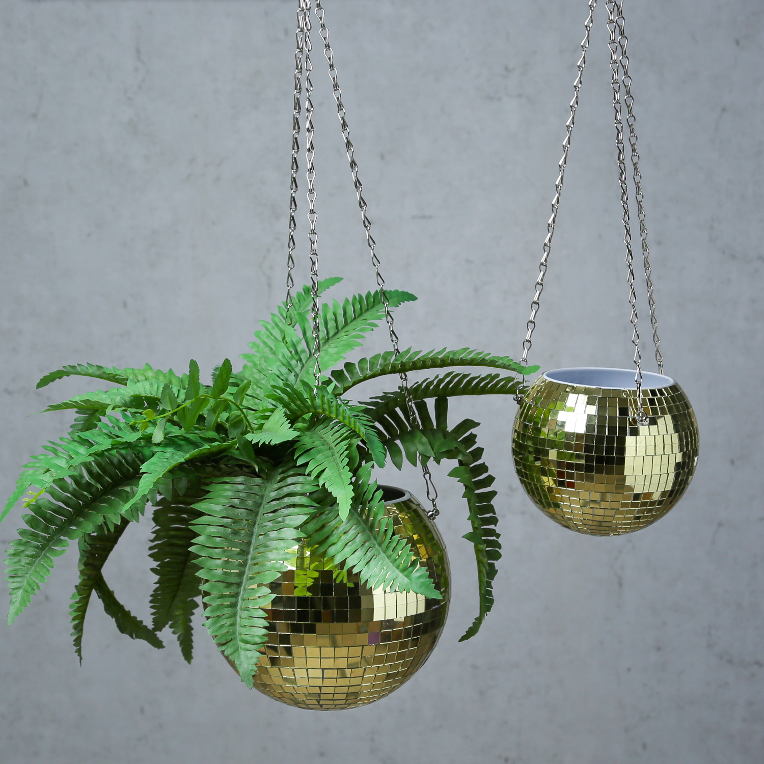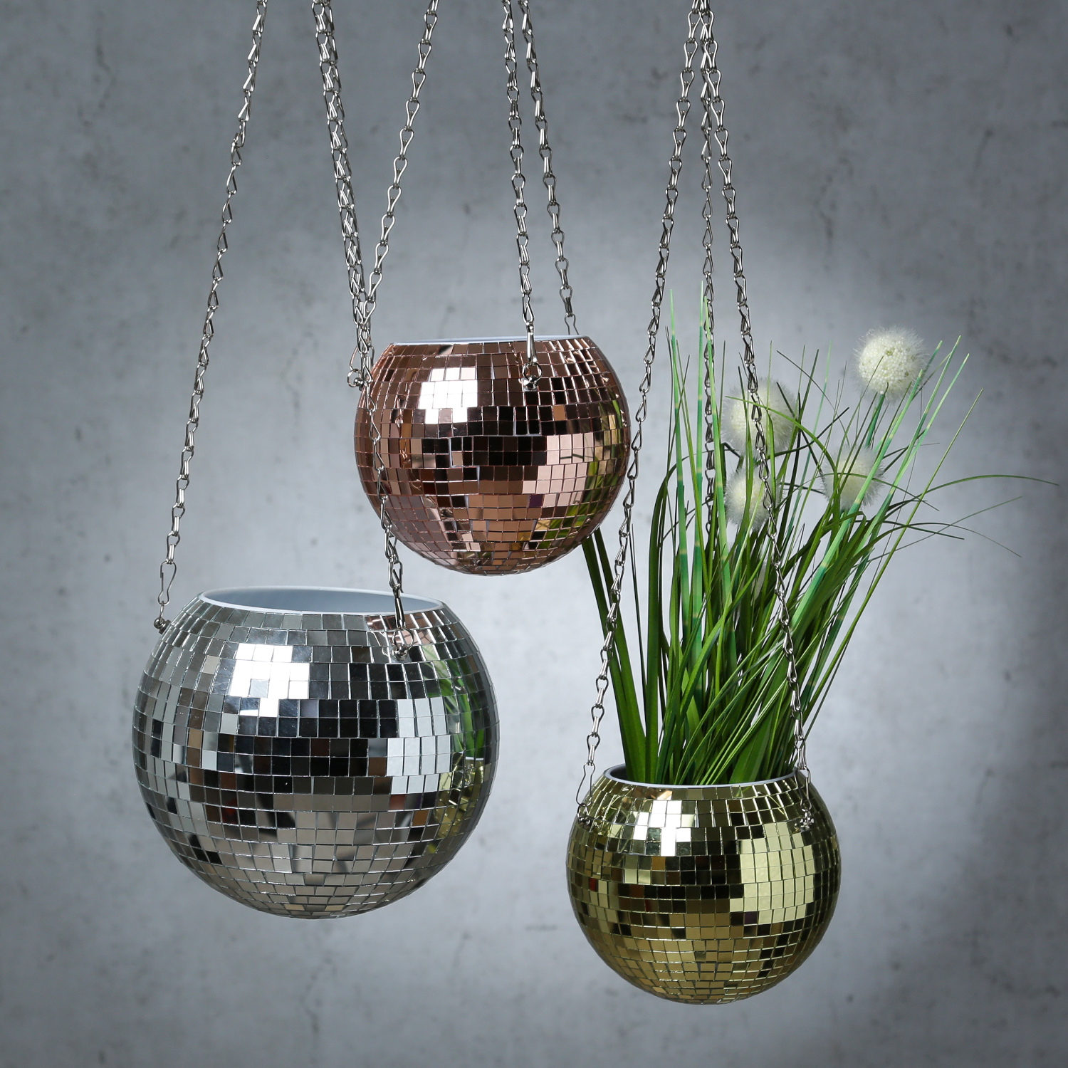 Blumenampel Discokugel - Spiegelkugel als Blumentopf - hängend - D: 15cm - gold