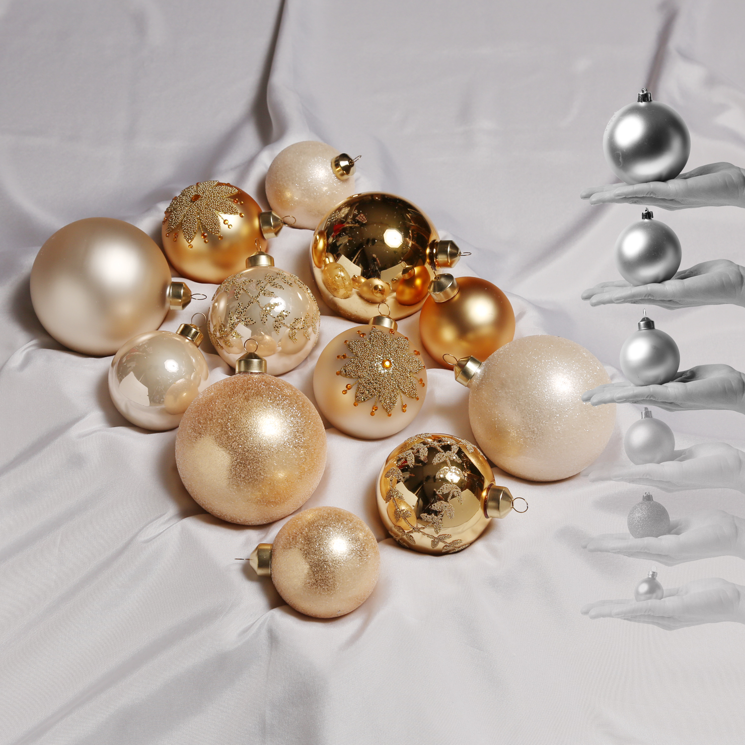 Christbaumkugel - Weihnachtskugel - Glas - 3 Größen - glänzend, matt und glitzernd - champagner, gold - 12er Set