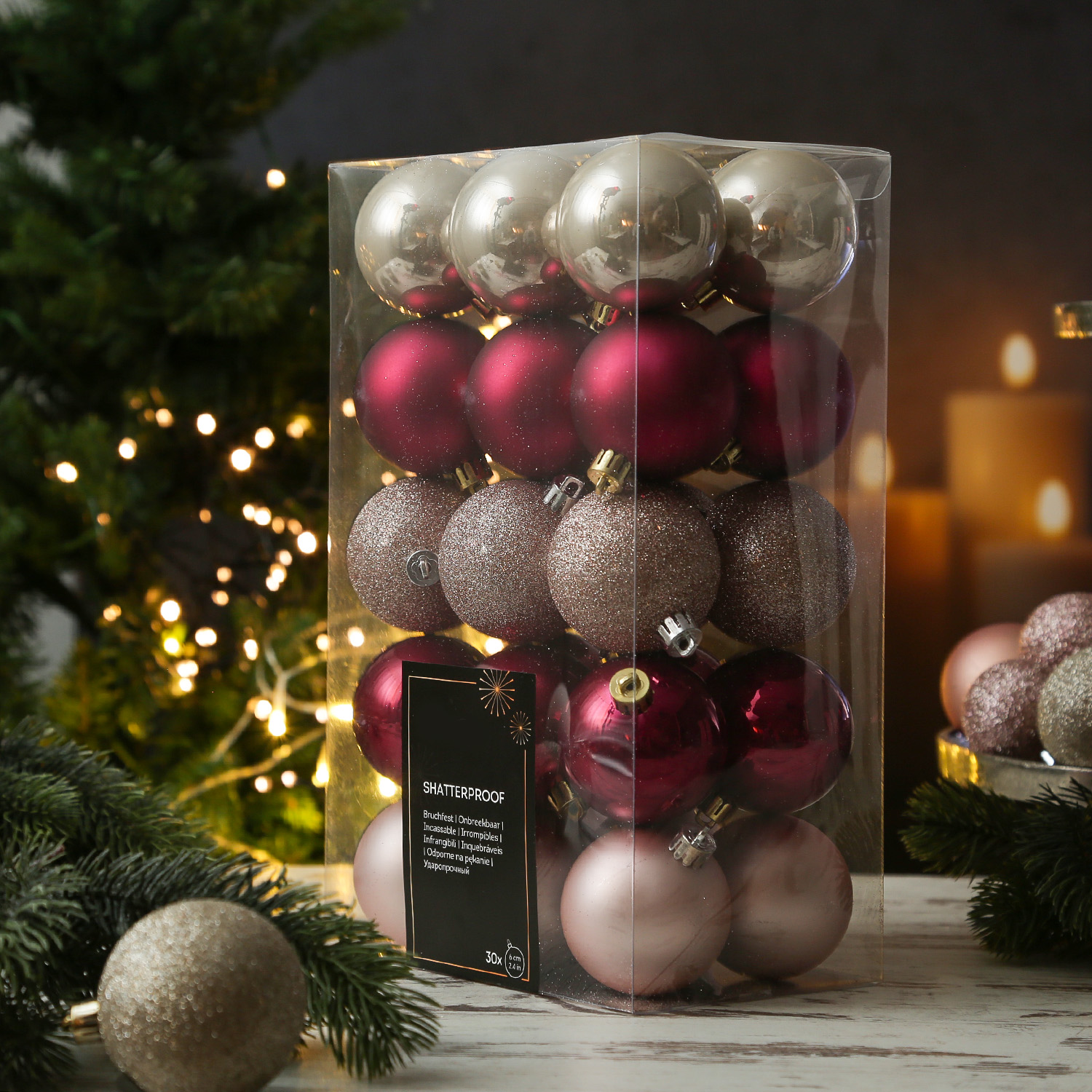 Christbaumkugeln - Weihnachtsbaumkugeln - bruchfest - D: 6cm - glänzend, matt und glitzernd - pink, rosa - 30er Set
