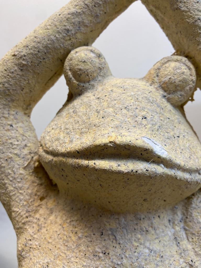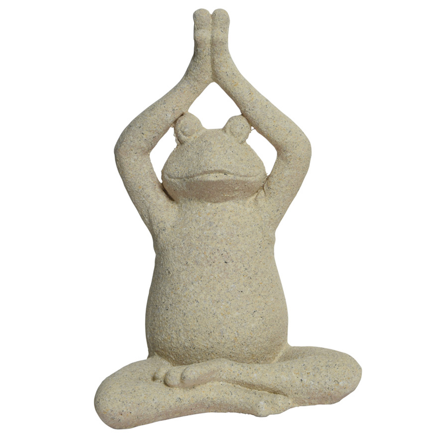 B-Ware Dekofigur Yoga Frosch - Hände über Kopf - Magnesia - H: 50,5cm - für Außen - natur