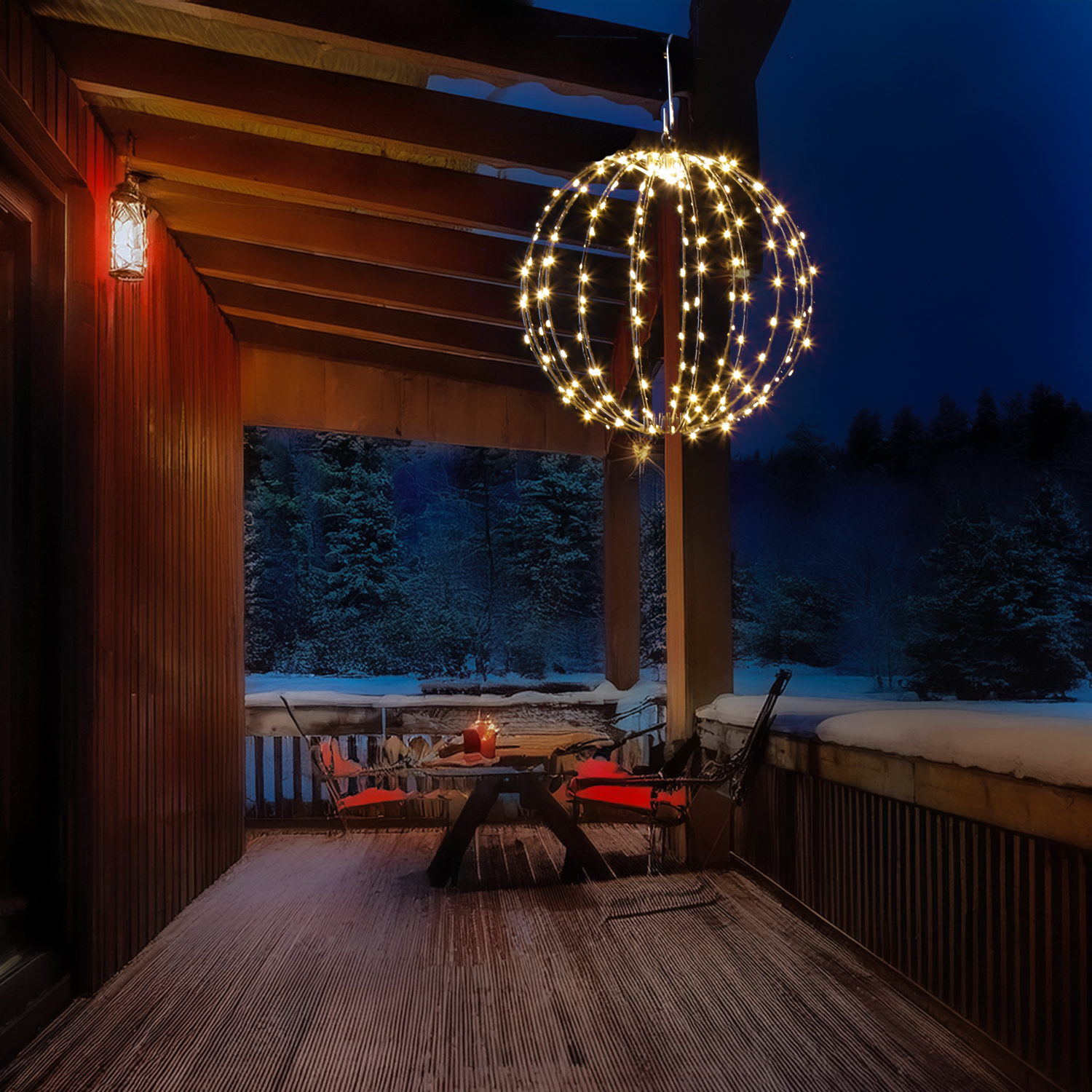 Du kannst die LED Kugel hängend oder auch auf dem Boden liegend präsentieren. Dabei bleibt es Dir überlassen, ob Du Deine Leuchtkugel Innen oder Draußen einsetzt. Die Kugel und auch der Trafo sind wetterfest und so leuchtet sie zu jeder Jahreszeit.