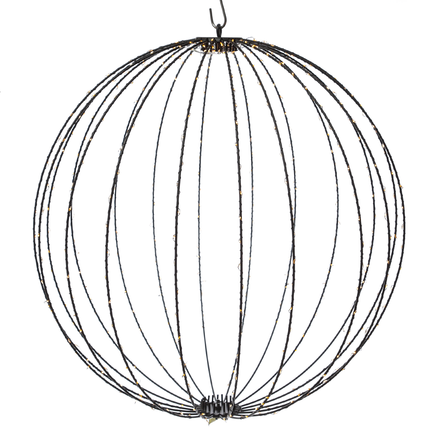 - Faltbare LED Kugelleuchte aus Metall mit schwarzen Drahtlichterkette umwickelt
