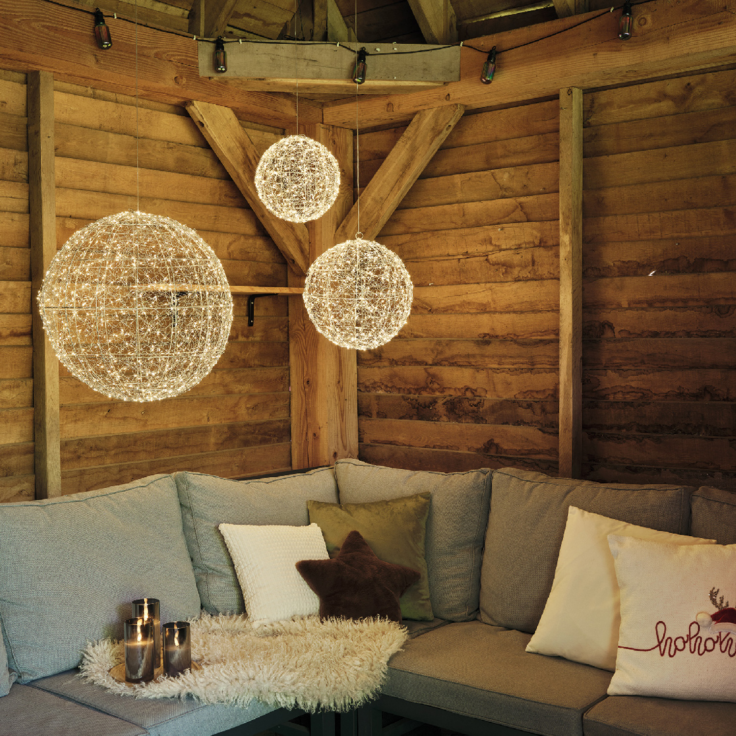 Im Sommer eignet sich die Drahtkugel perfekt für die Ambiente-Beleuchtung der Terrasse oder des Balkons. Und im Winter schimmert und glitzert sie herrlich im Baum, am Carport oder am Balkon.