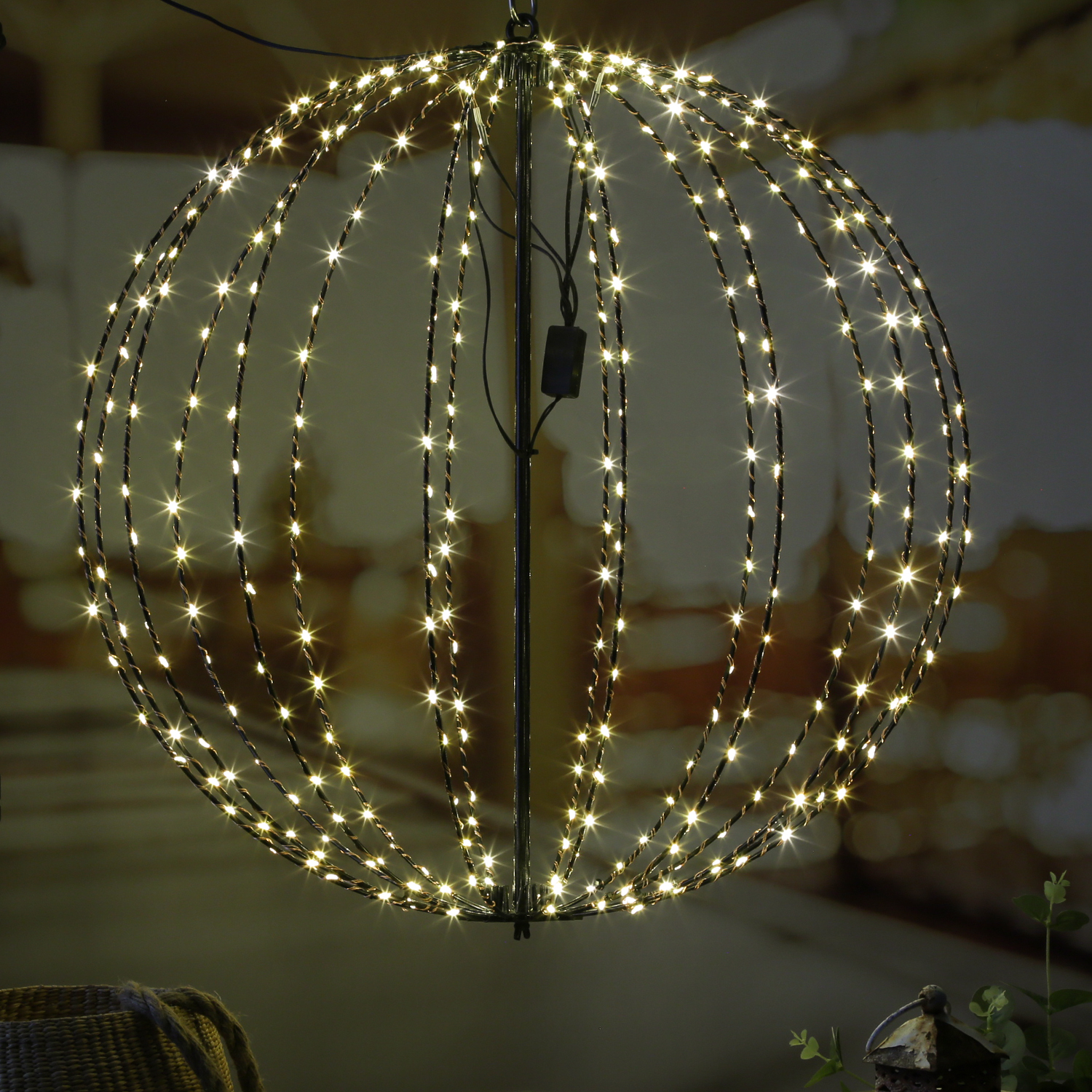 LED Drahtkugel - Leuchtkugel - D: 56cm - 320 warmweiße LED - faltbar - für Innen und Außen - schwarz