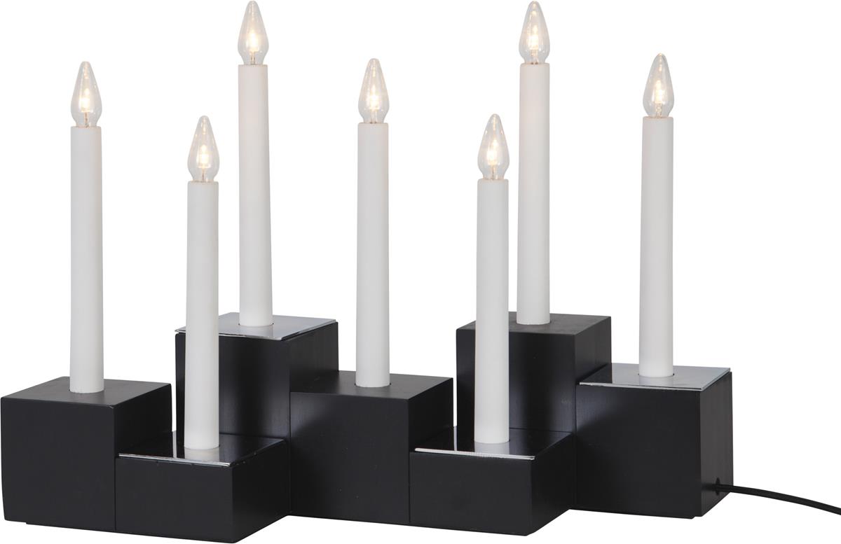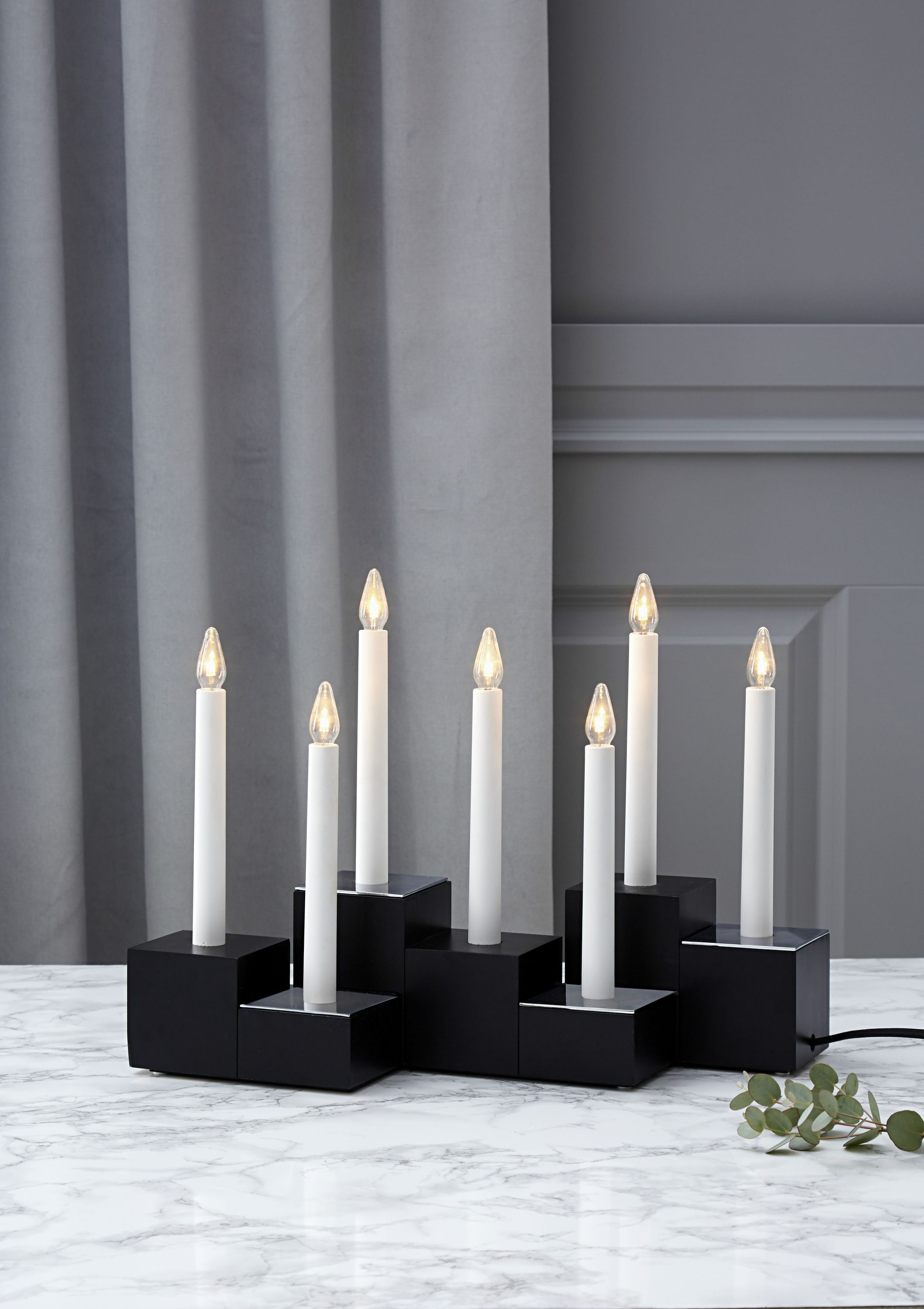 B-Ware LED-Fensterleuchter "Klossy" - 7flammig - warmweiße LEDs - H: 29cm - Schalter - Schwarz/Gold
