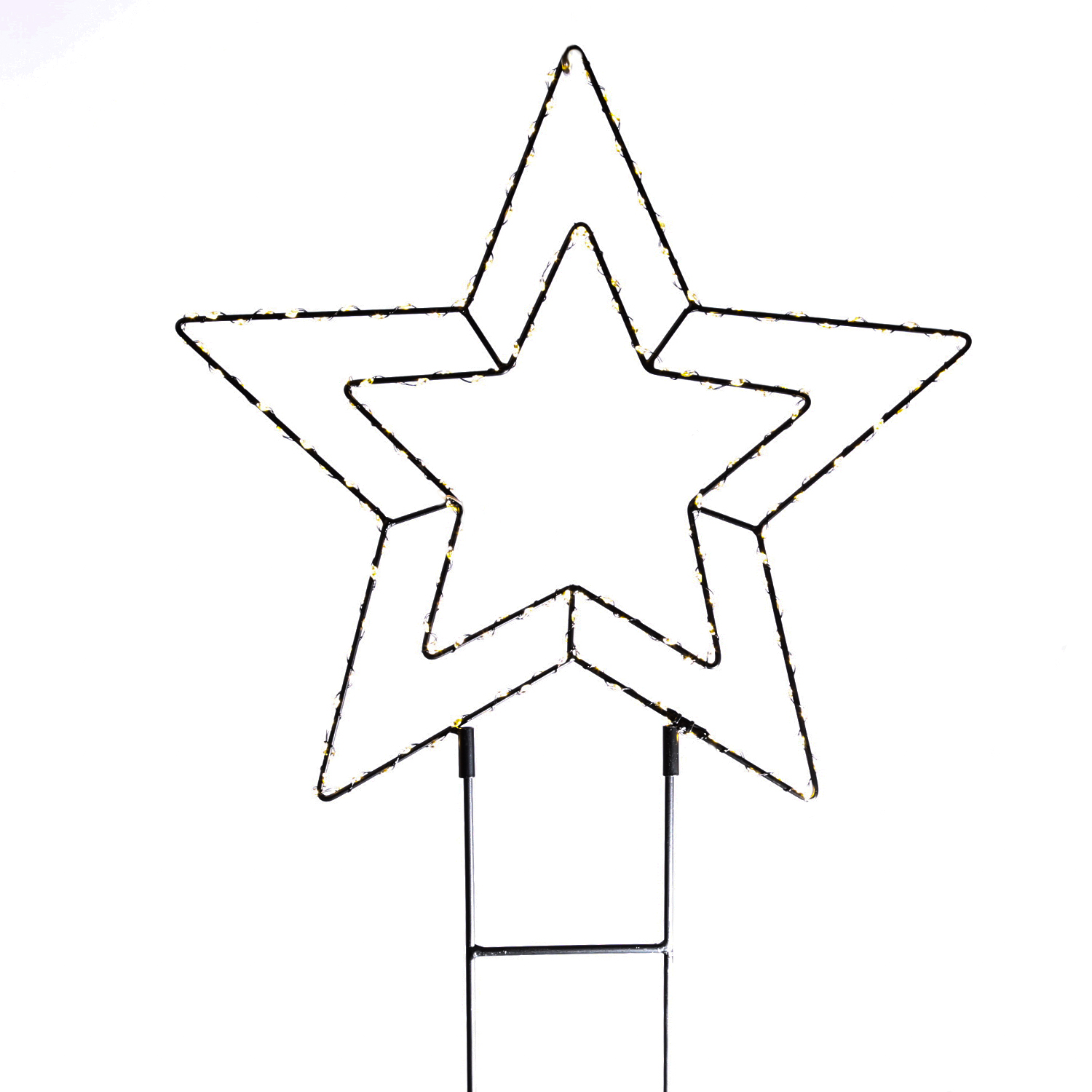 B-Ware LED Gartenstecker STERN - 180 warmweiße LED - D: 38cm - Timer - Trafo - für Außen - schwarz