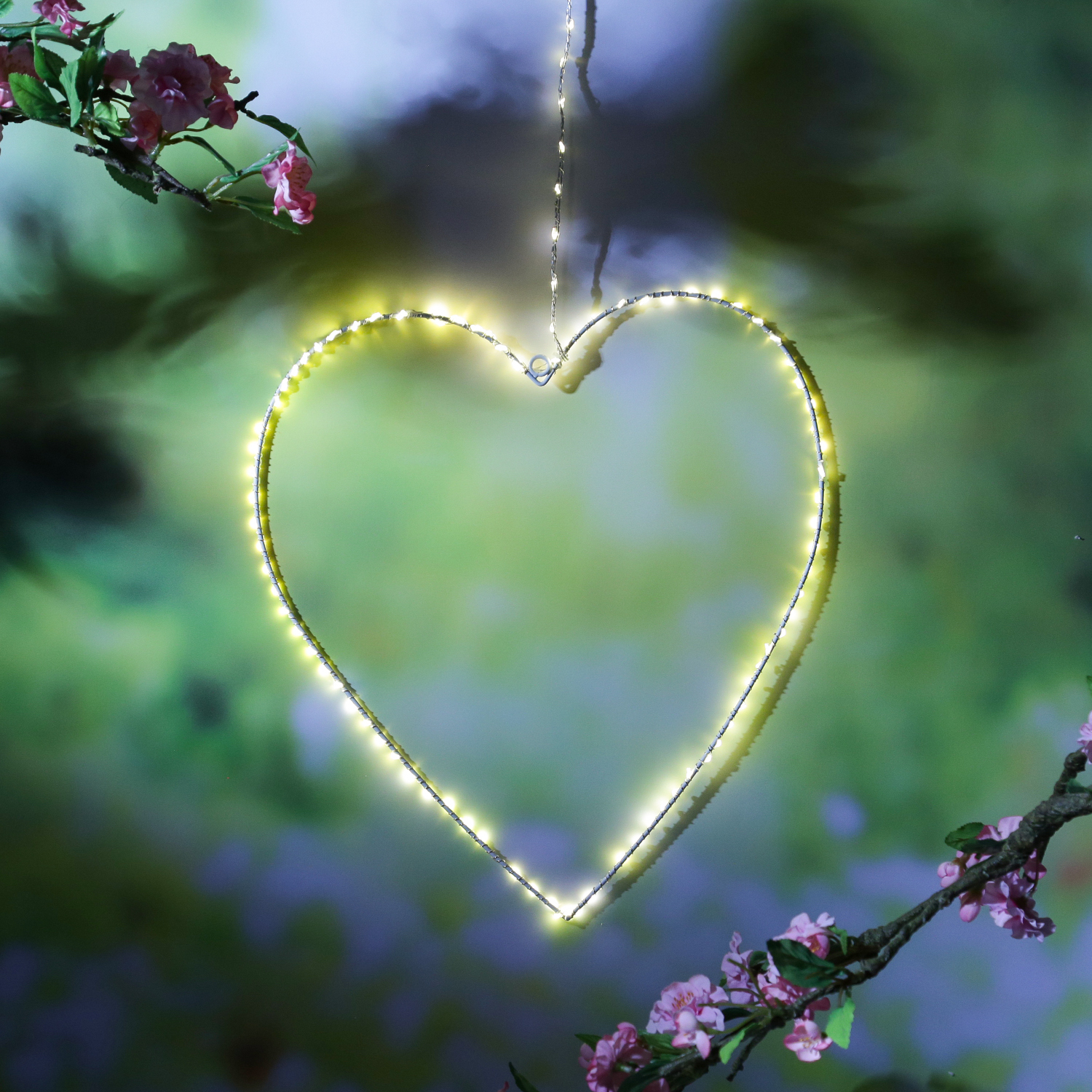 Dieses hängende 40cm LED Herz ist die perfekte Dekoration für Deinen Garten, auf dem Balkon oder auf der Terrasse. Aber auch in Deinem Wohnbereich an Deinen Fenstern oder an der Wand sorgt dieses Metallherz für eine gemütliche Stimmung.