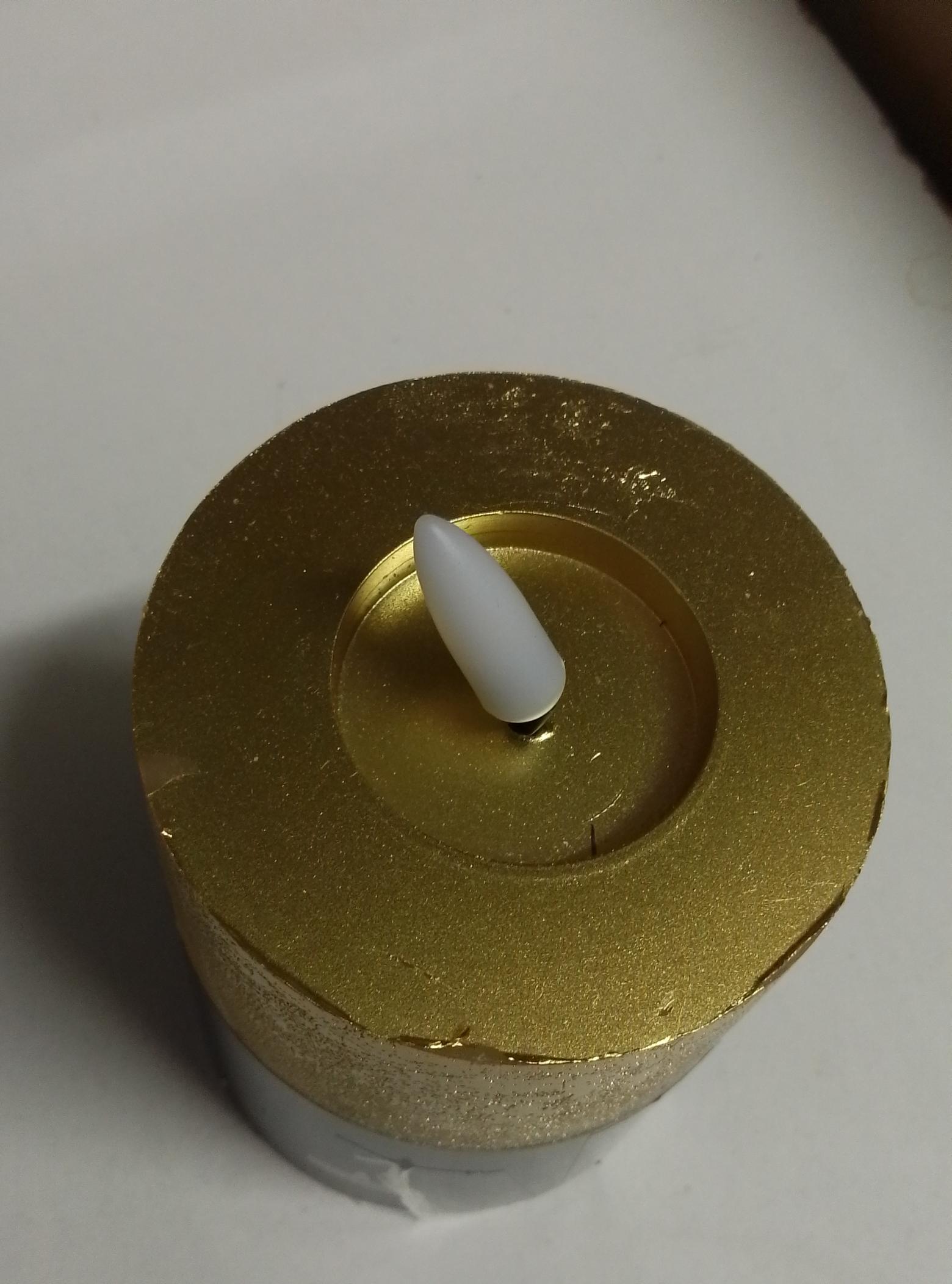 Die Flamme dieser LED Kerze ist eine sogenannte 3D Flamme. Sie hat die Form einer echten Flamme und flackert leicht in einem warmweißen Licht. So sieht der Effekt besonders realistisch aus. Die Flamme ist in einem schön geformten Wachstrichter eingelassen. Das ähnelt einer echten Wachskerze, bei der das Wachs schon etwas geschmolzen ist.