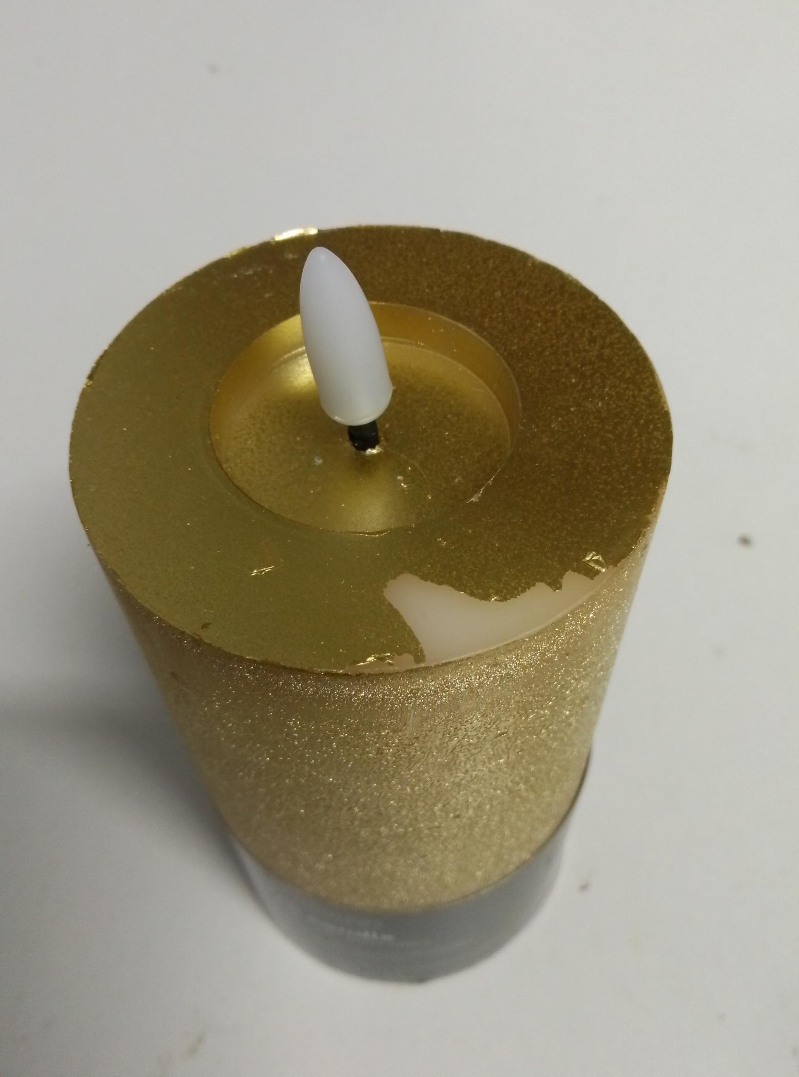 B-Ware LED Kerze LINA - Rustik-Optik - Echtwachs - 3D Flamme - H: 15cm - D: 7cm - Timer - gold