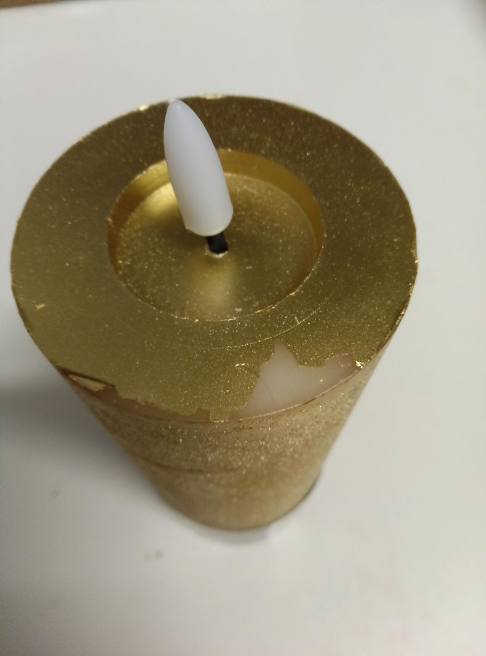 B-Ware LED Kerze LINA - Rustik-Optik - Echtwachs - 3D Flamme - H: 19cm - D: 7cm - Timer - gold
