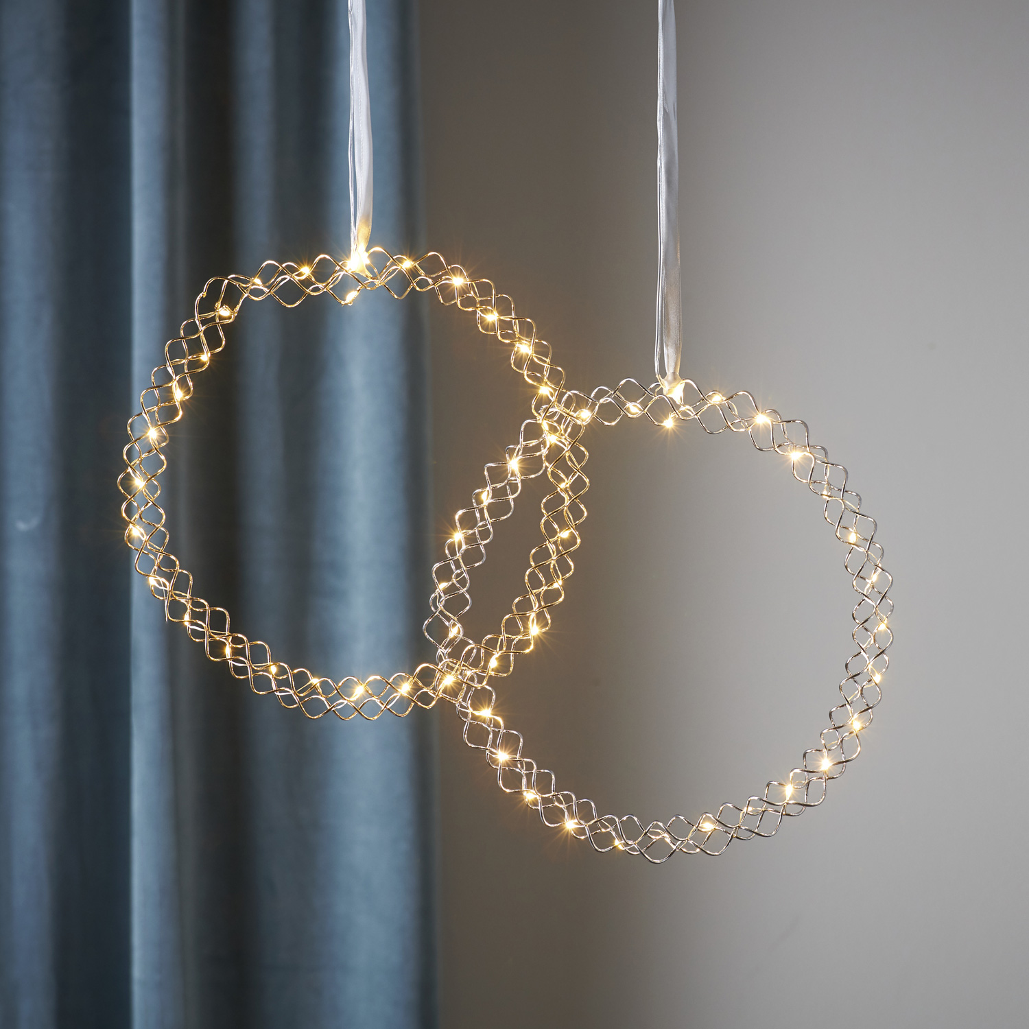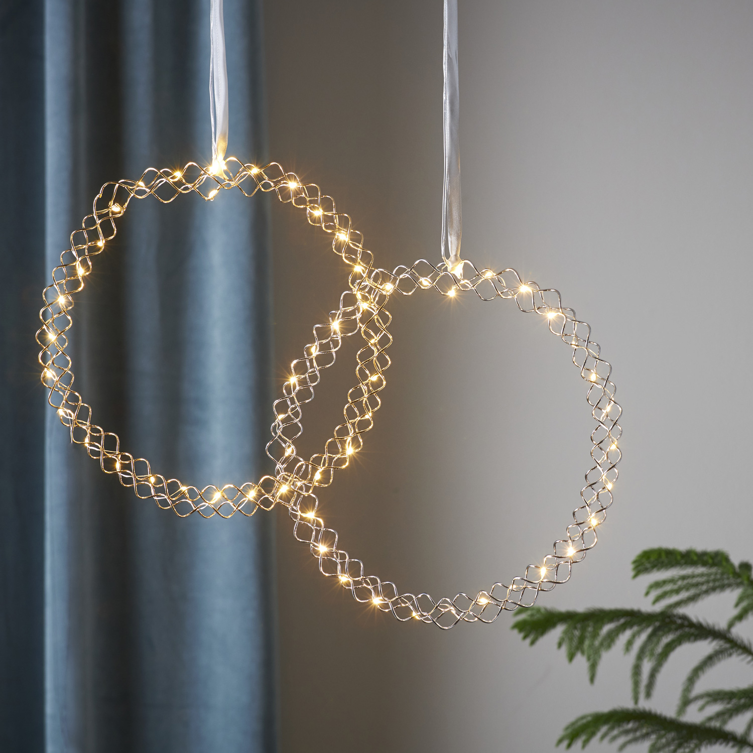 LED Lichtkranz Hoop - 30 warmweiße LED - D: 30cm - Metall - Batteriebetrieb - Timer - silber