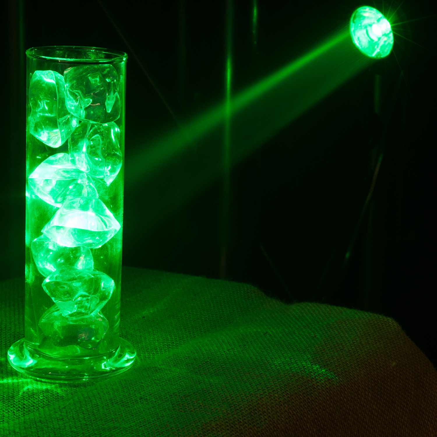 Der enge Abstrahlwinkel von ca. 5° lässt eine Beleuchtung der Kugel aus etwas Abstand zu. Abhängig davon ist der Durchmesser der Kugel.
