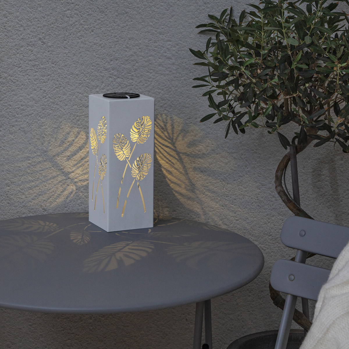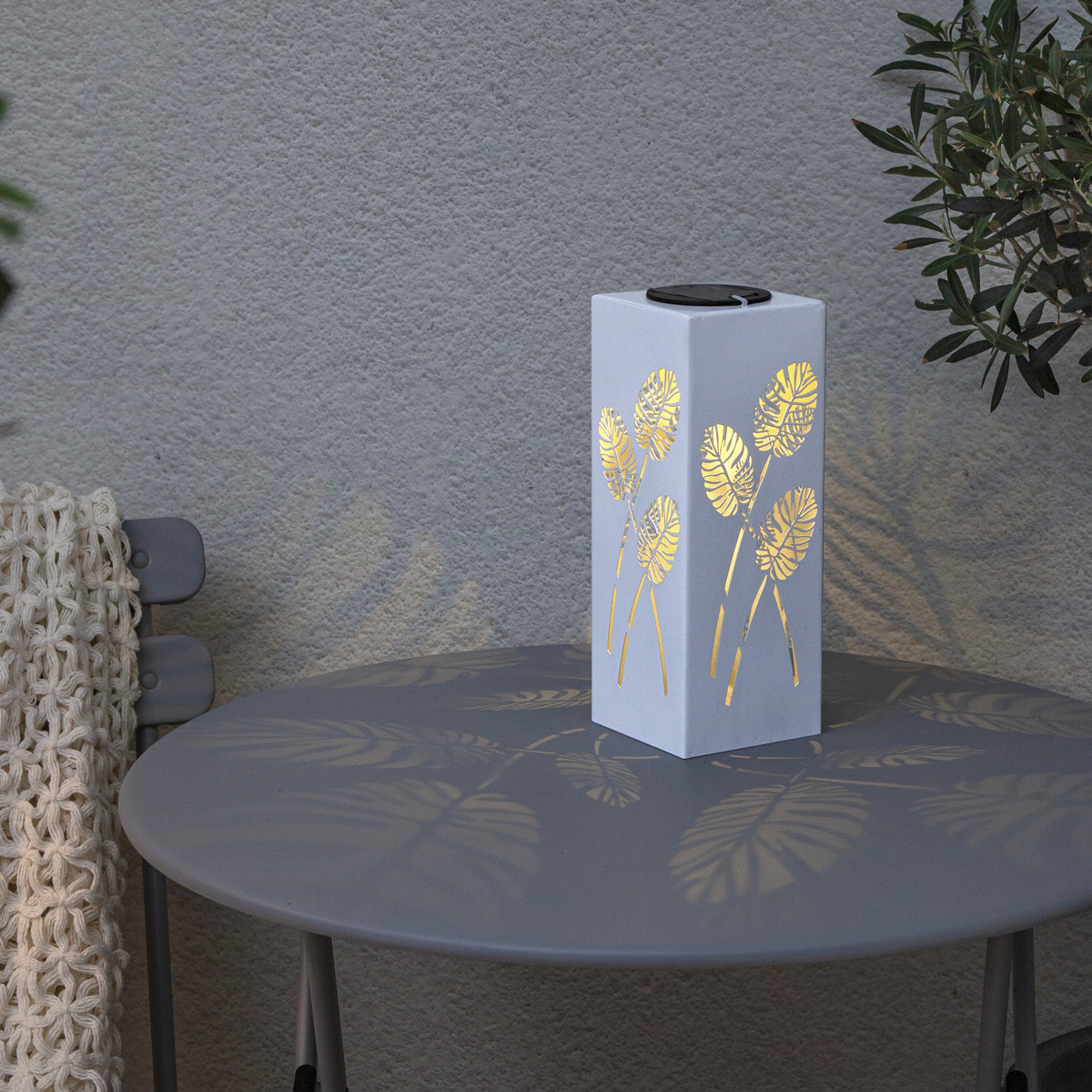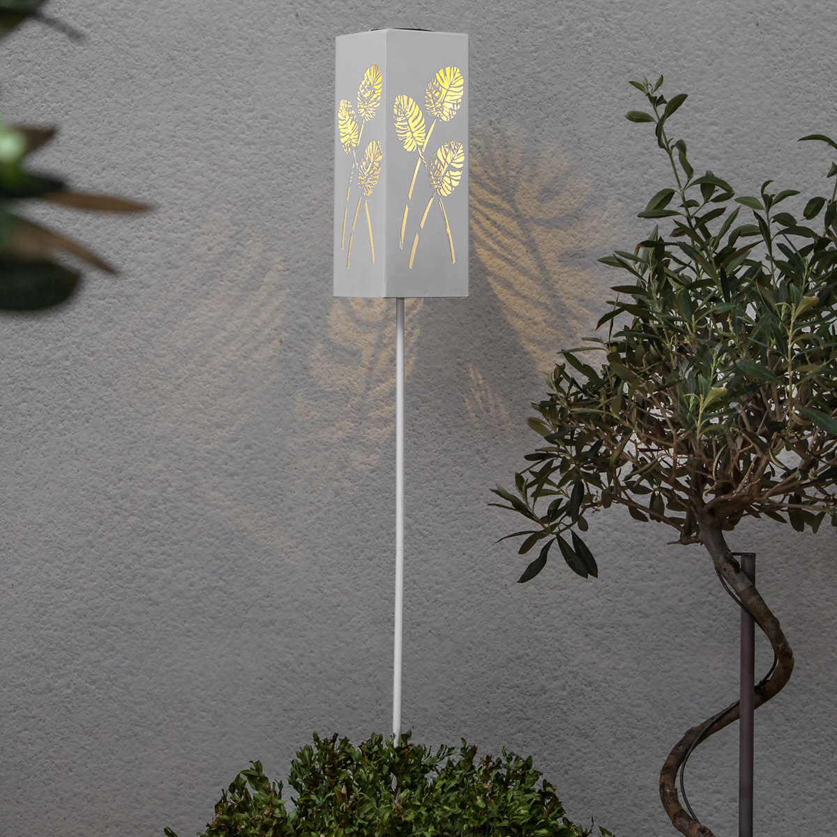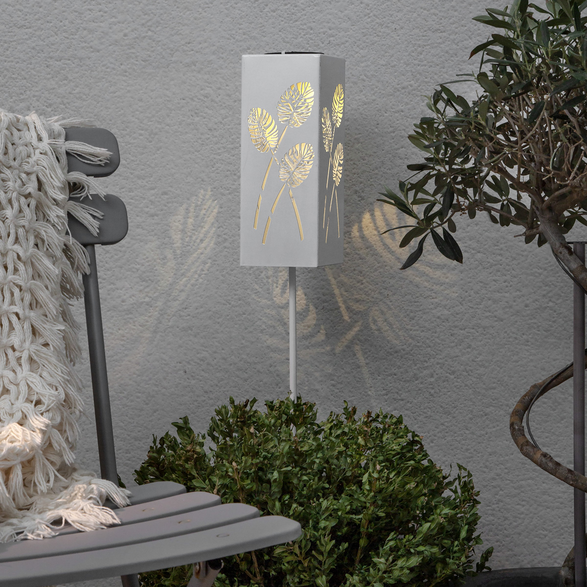 Die weiße LED Solar Dekoleuchte mit dem wunderschönen Blattmuster ist ein absoluter Blickfang. Die Vielseitigkeit der Solar Dekoleuchte ist perfekt für Deine Terrasse oder den Balkon geeignet. Du kannst die LED Solar Dekoleuchte auch ideal als Wegleuchte einsetzen.