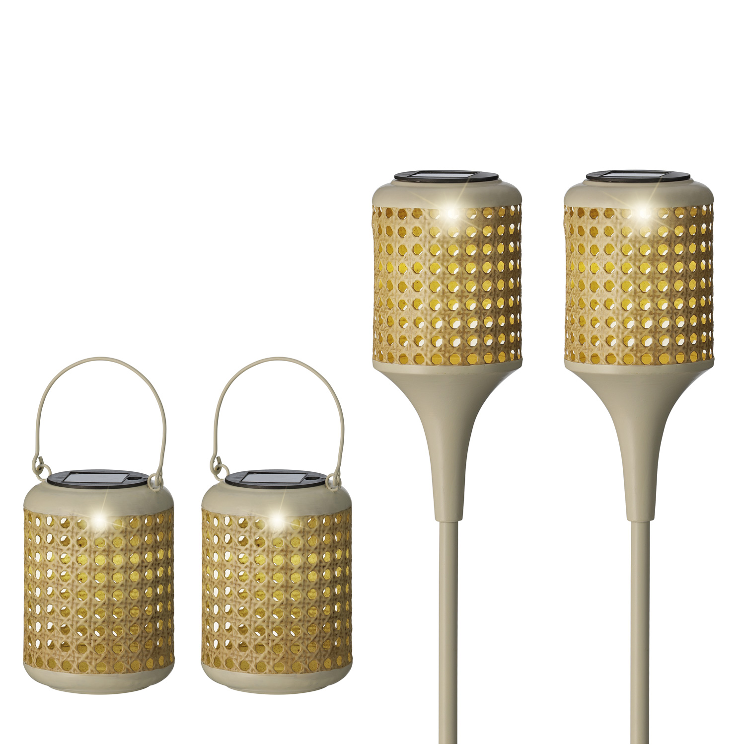 B-Ware LED Solar Laternen und Gartenstecker - zwei Henkel u. zwei Erdspieße - D: 10,5cm - natur - 4er Set