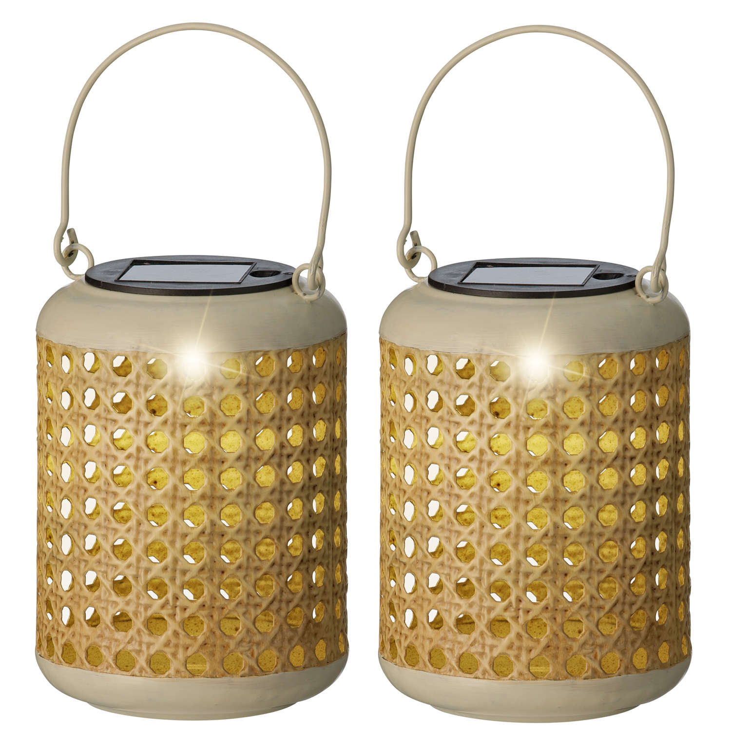 LED Solar Laternen und Gartenstecker - zwei Henkel u. zwei Erdspieße - D: 10,5cm - natur - 4er Set