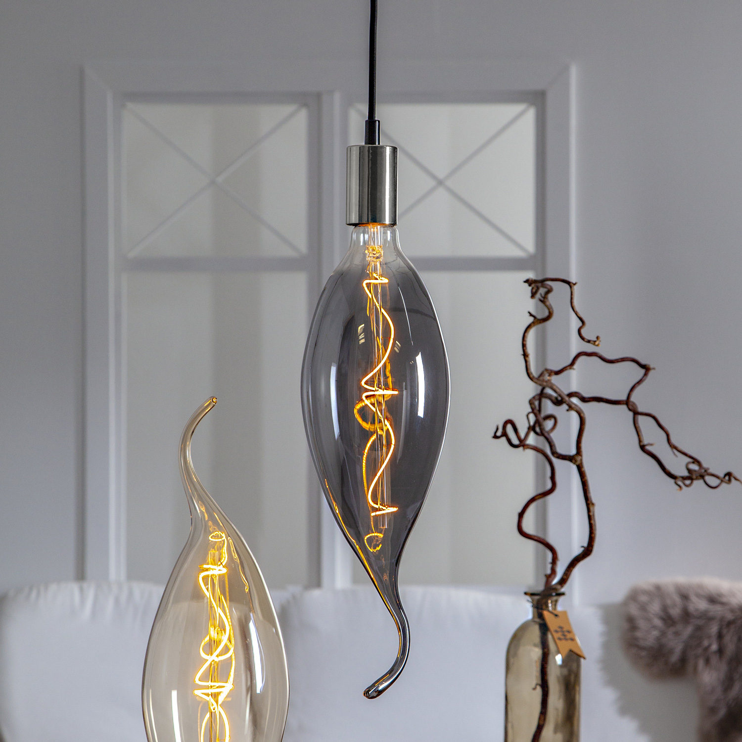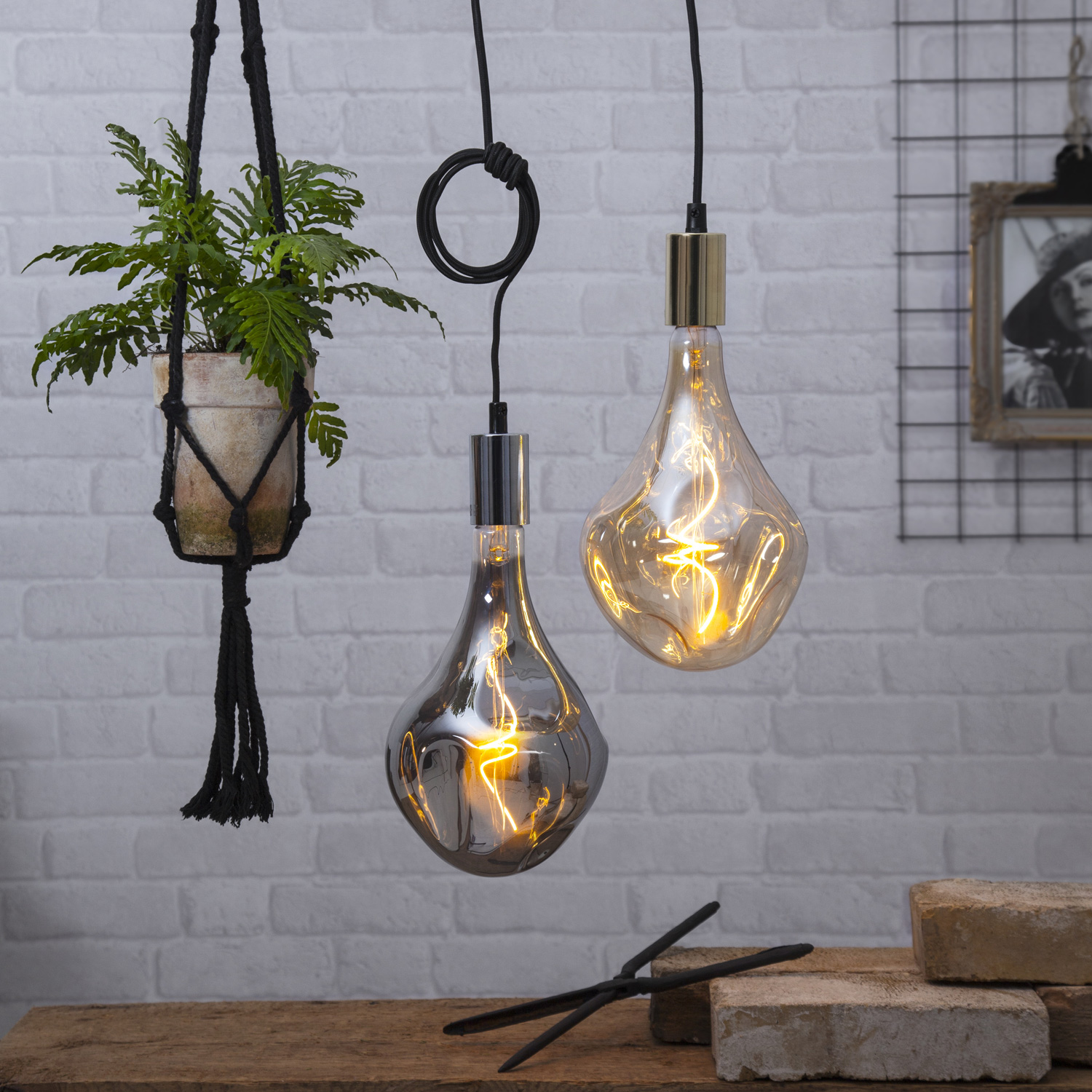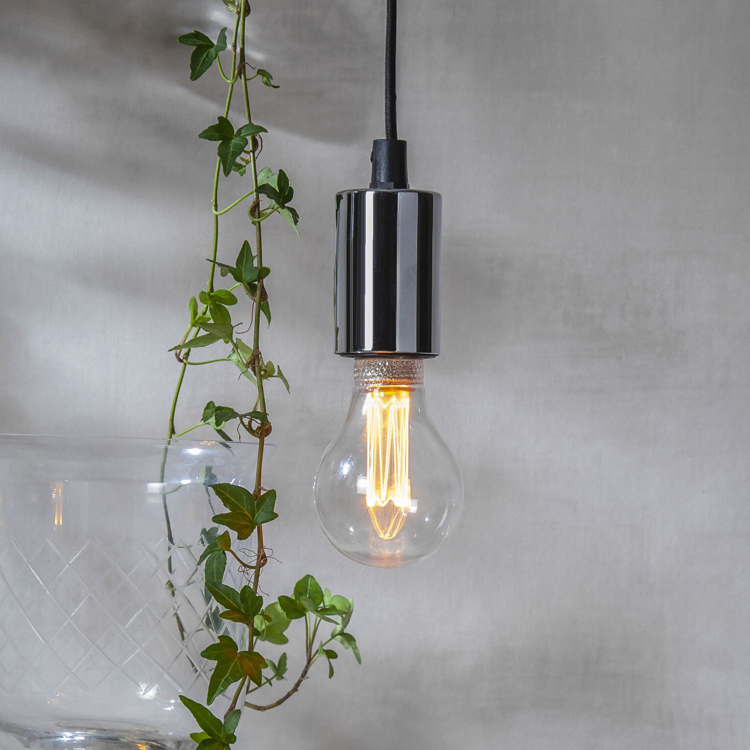 Mit einem 3,5m langen, schwarzen Textilkabel ist die Lampenfassung auch für hohe Decken oder die sogenannte "Affenschaukel" geeignet. Ein Schnurzwischenschalter befindet sich 100cm vom Stecker und 250cm von der Fassung entfernt.