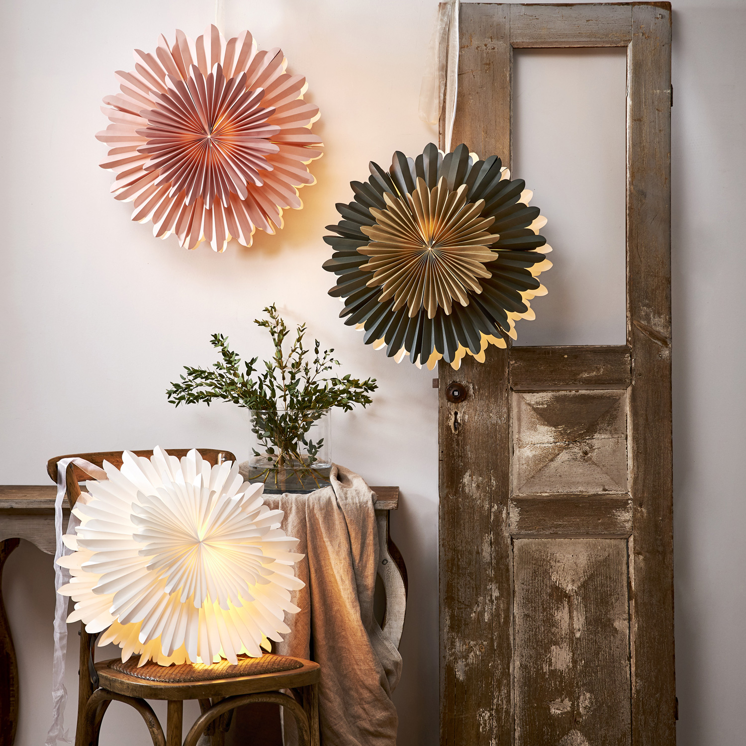 Der in zartem rosa gehaltene 50cm Papierstern sieht bei Tag und Nacht einfach schön aus.