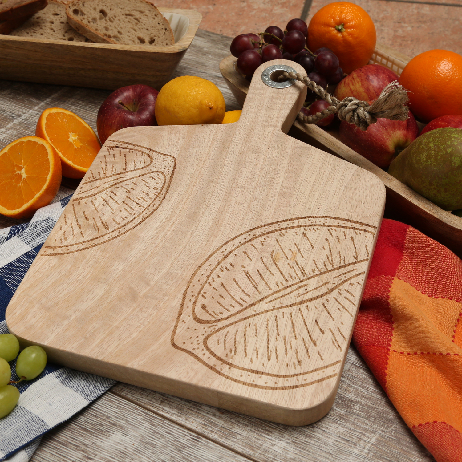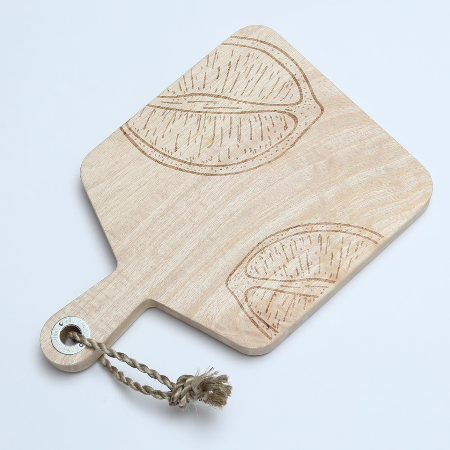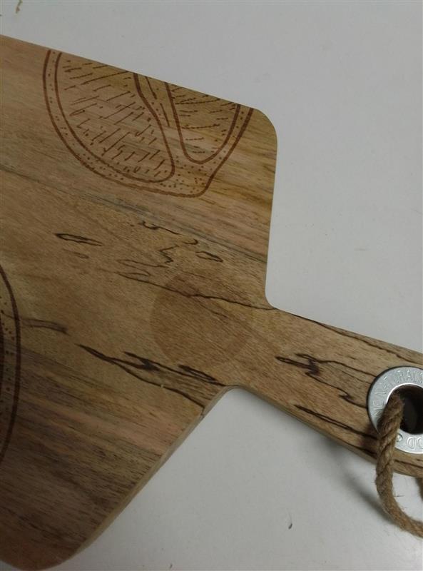 B-Ware Schneidebrett - Vesperbrett - Zitronenmotiv längs geschnitten - Mangoholz - Kordel - L:38cm - natur