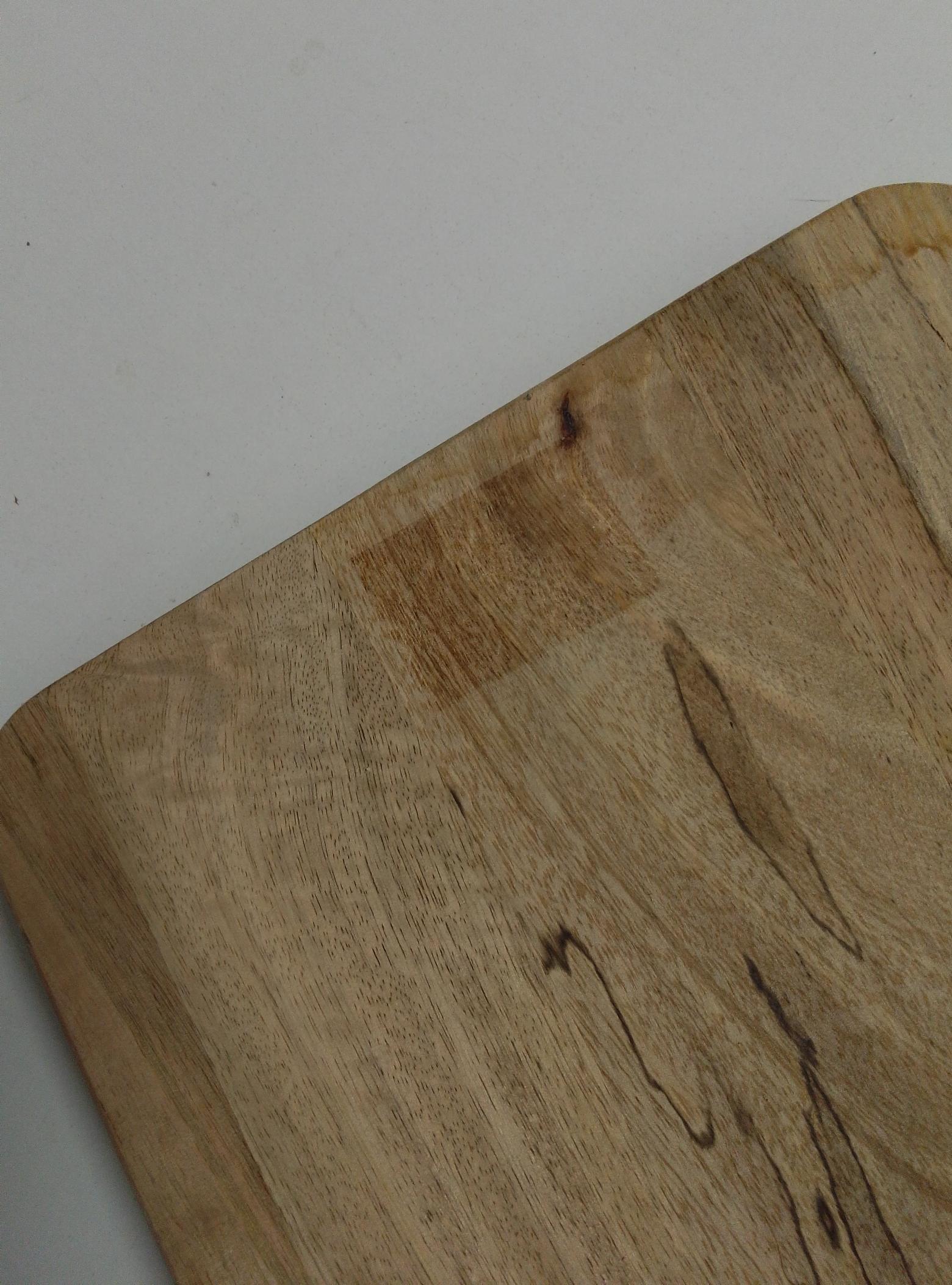 Mangoholz ist besonders hart. Dadurch bilden sich weniger Rillen beim Schneidevorgang. Und weniger Rillen bedeutet auch weniger Ansammlung von Keimen und Bakterien. Somit sind Schneidebretter aus Mangoholz bestens für die Küche geeignet.