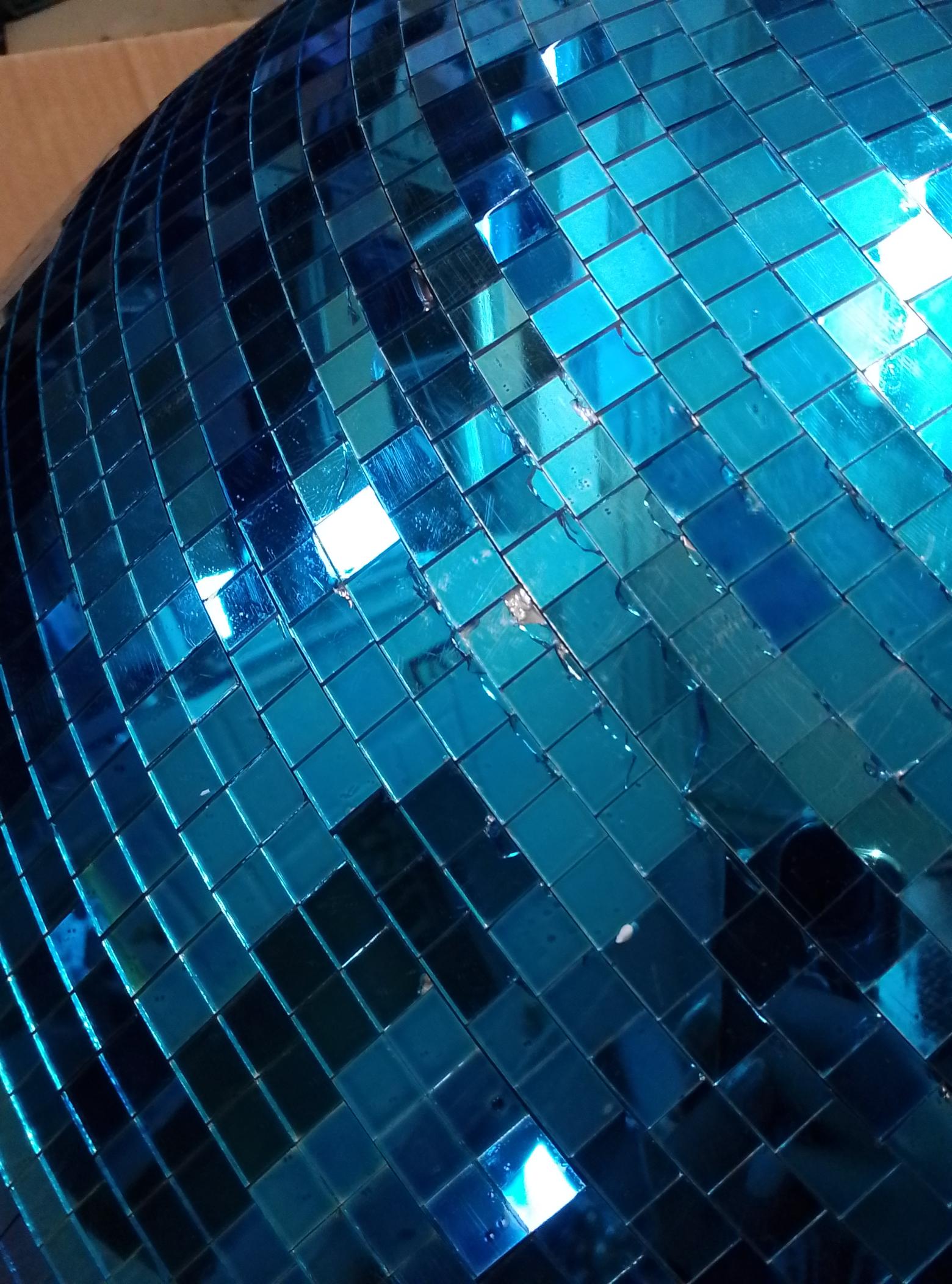 Um den bestmöglichen Effekt zu erzielen, sind die Spiegelfacetten auf 10x10mm geschnitten und nahezu lückenlos verklebt. Dadurch wird möglichst viel auftreffendes Licht reflektiert und in Strahlen aufgebrochen. Das ergibt den legendären Diskoeffekt, der bis heute nichts an Attraktivität verloren hat.