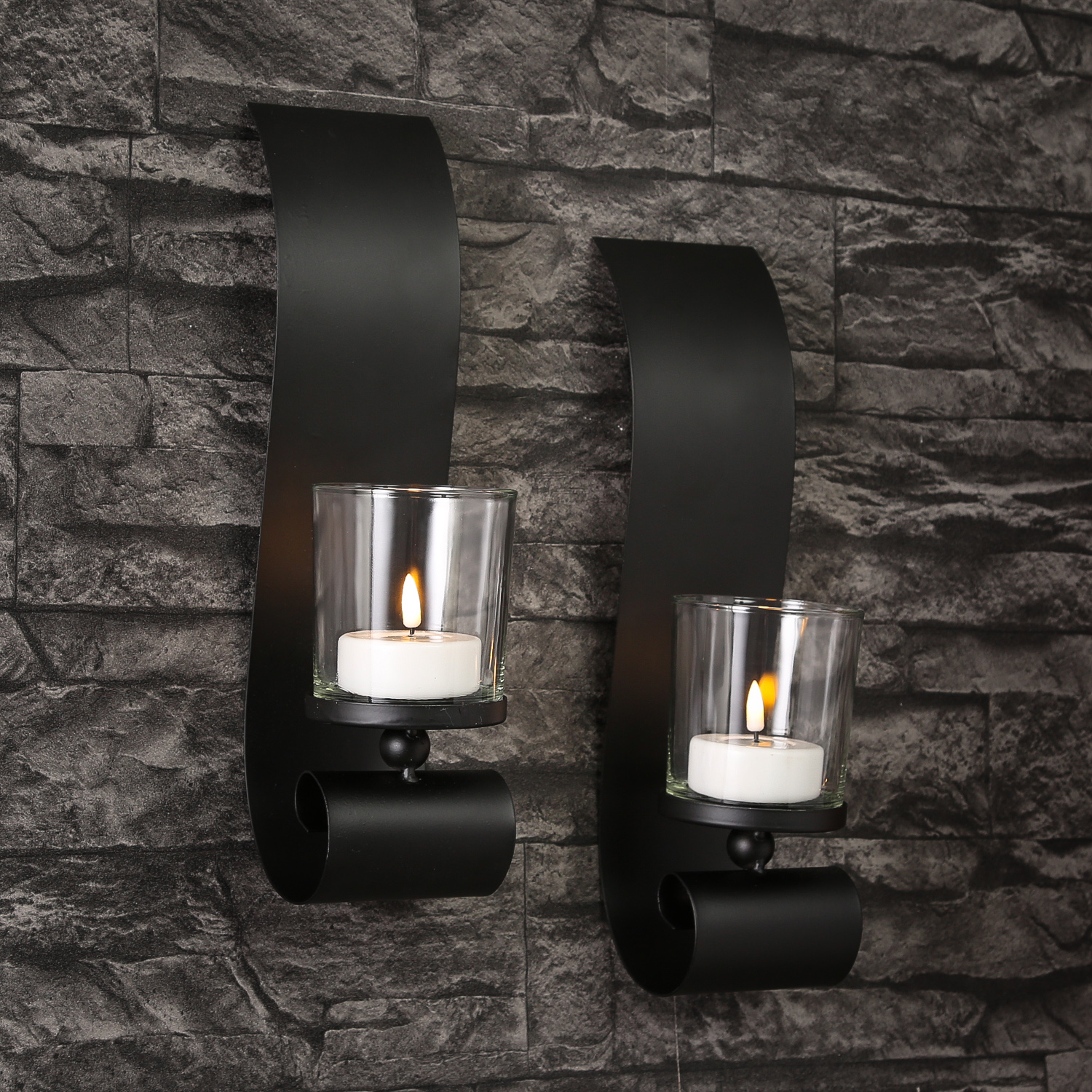 B-Ware Wandkerzenhalter ROLL - mit Glaskerzenhalter - Metall - H: 35cm - schwarz - 2er Set