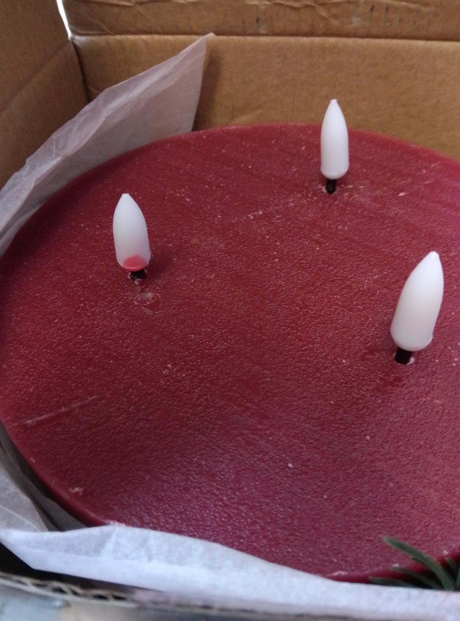 B-Ware XXL LED Kerze - 3-Docht - Echtwachs - Timer - H: 15cm D: 15cm - rot