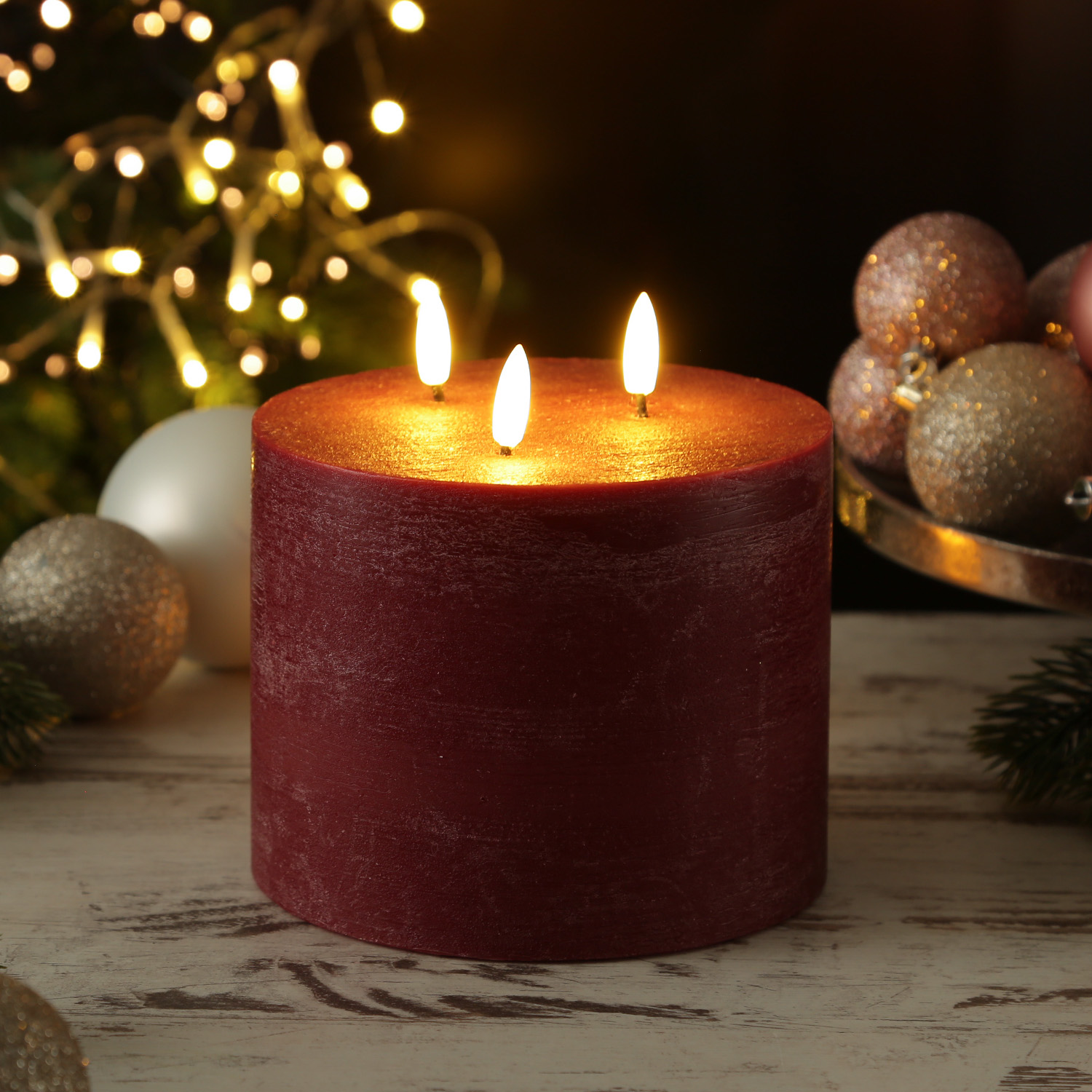 - LED Kerze in rustikaler Oberfläche mit 3 Flammen