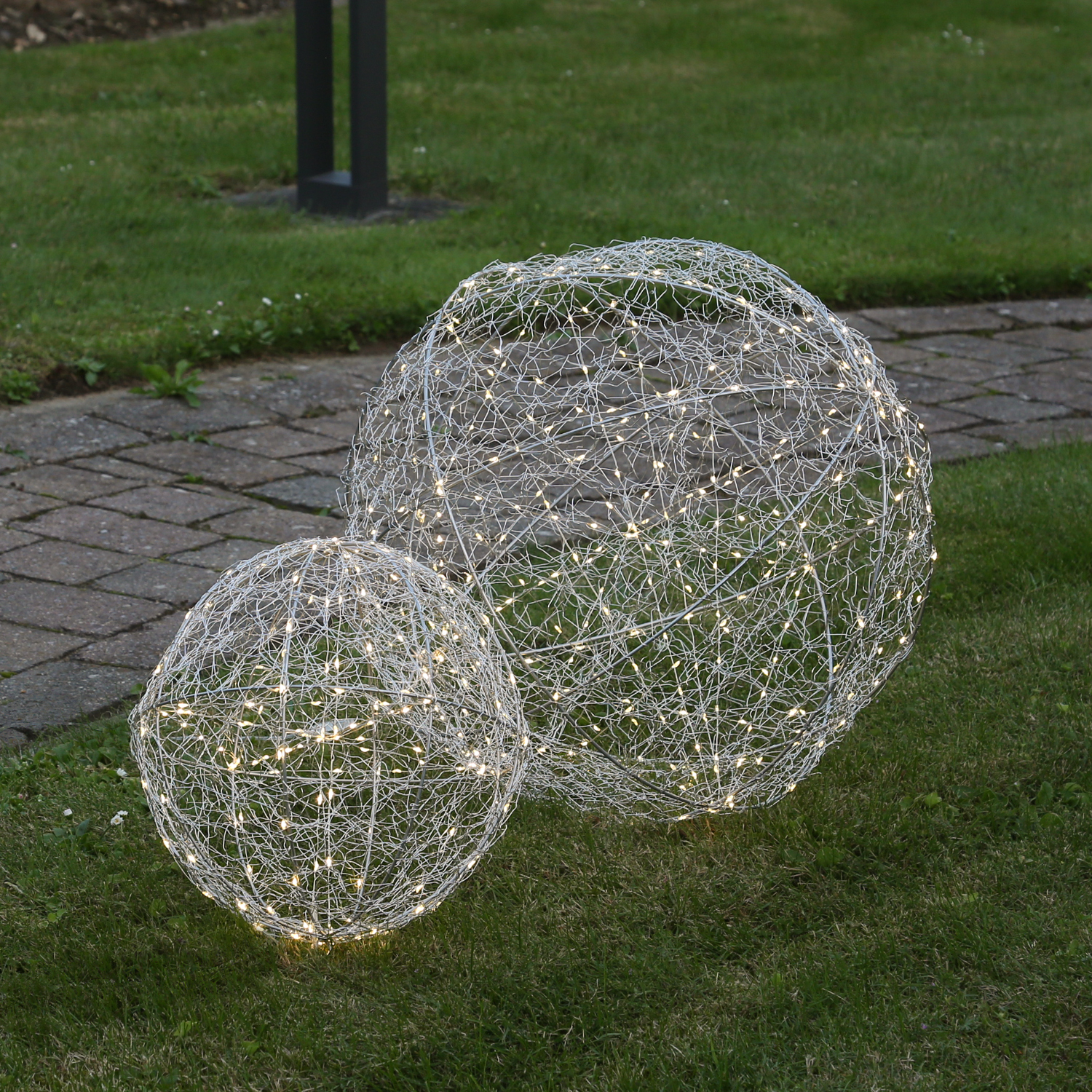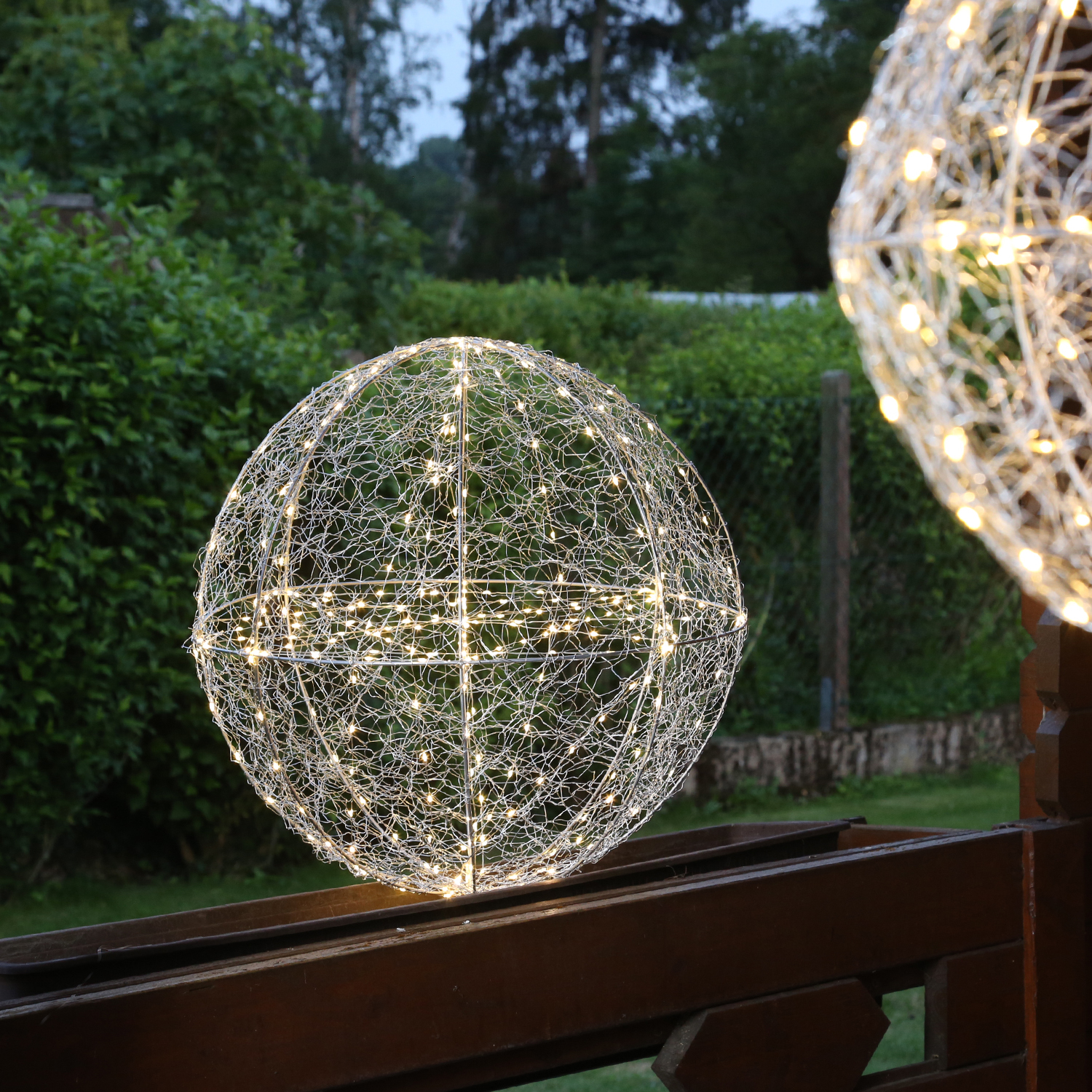 XXX LED 3D Designkugel TRASSEL - Drahtkugel - D: 30cm - 150 warmweiße LED - Silberdraht - outdoor