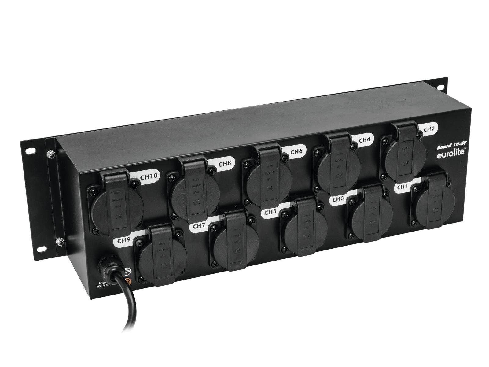 - Ausgangsbuchsen: 10 Schutzkontaktsteckdosen