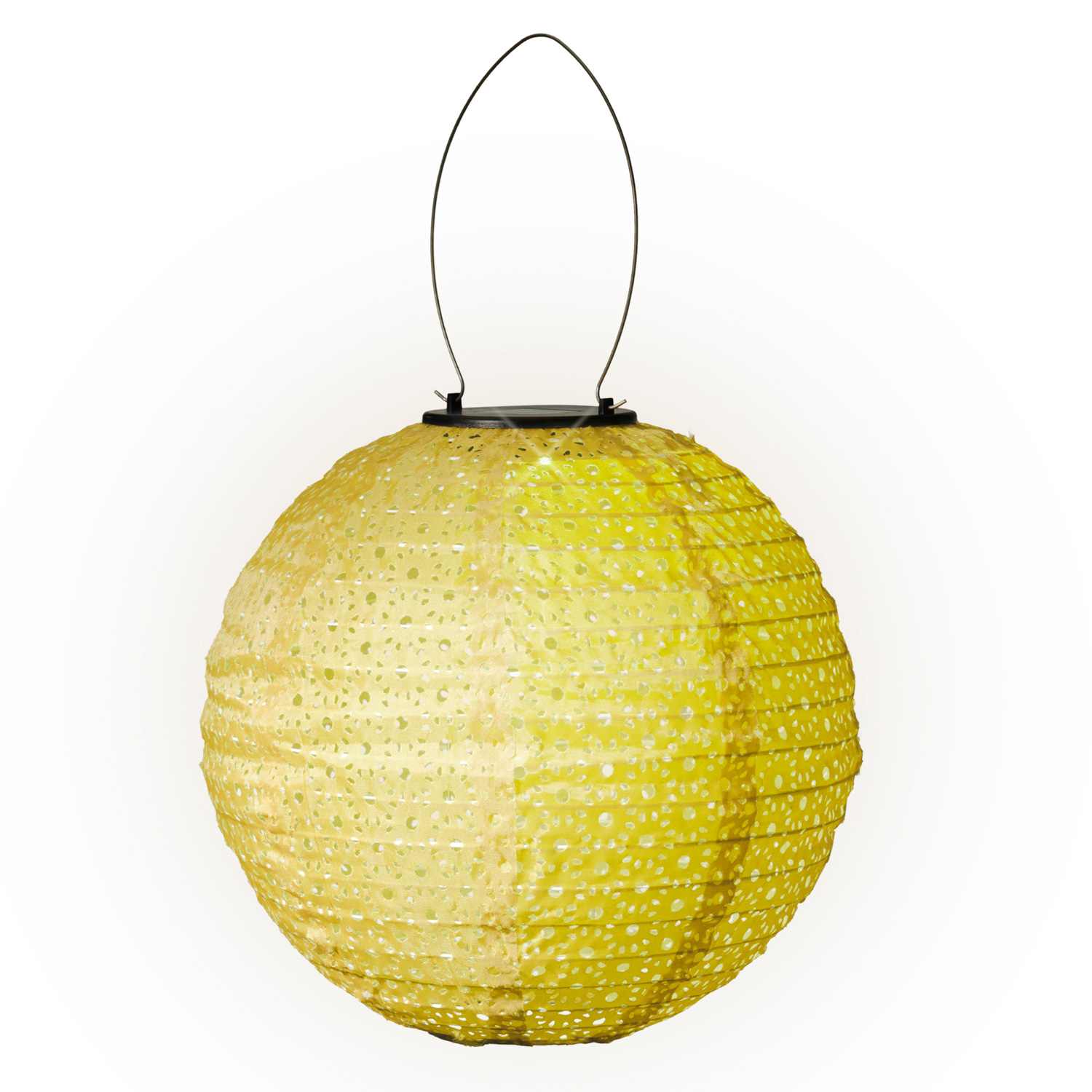 LED Solar Lampion - mit Blumenmuster - warmweiße LED - H: 25cm - D: 25cm - Lichtsensor - gelb