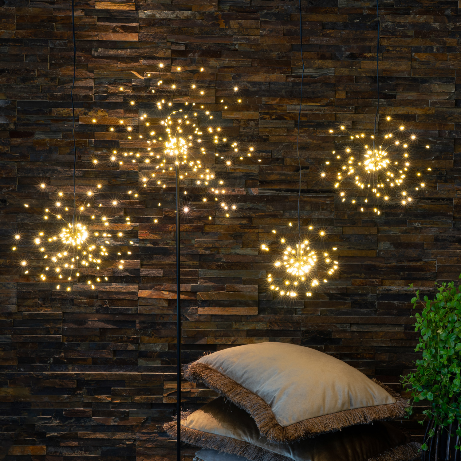 Dieser wunderschöne Dekostern in Form eines Feuerwerks versprüht seine warmweißen Funken in alle Richtungen. Als Standstern zaubert er eine tolle Atmosphäre zu jeder Jahreszeit.