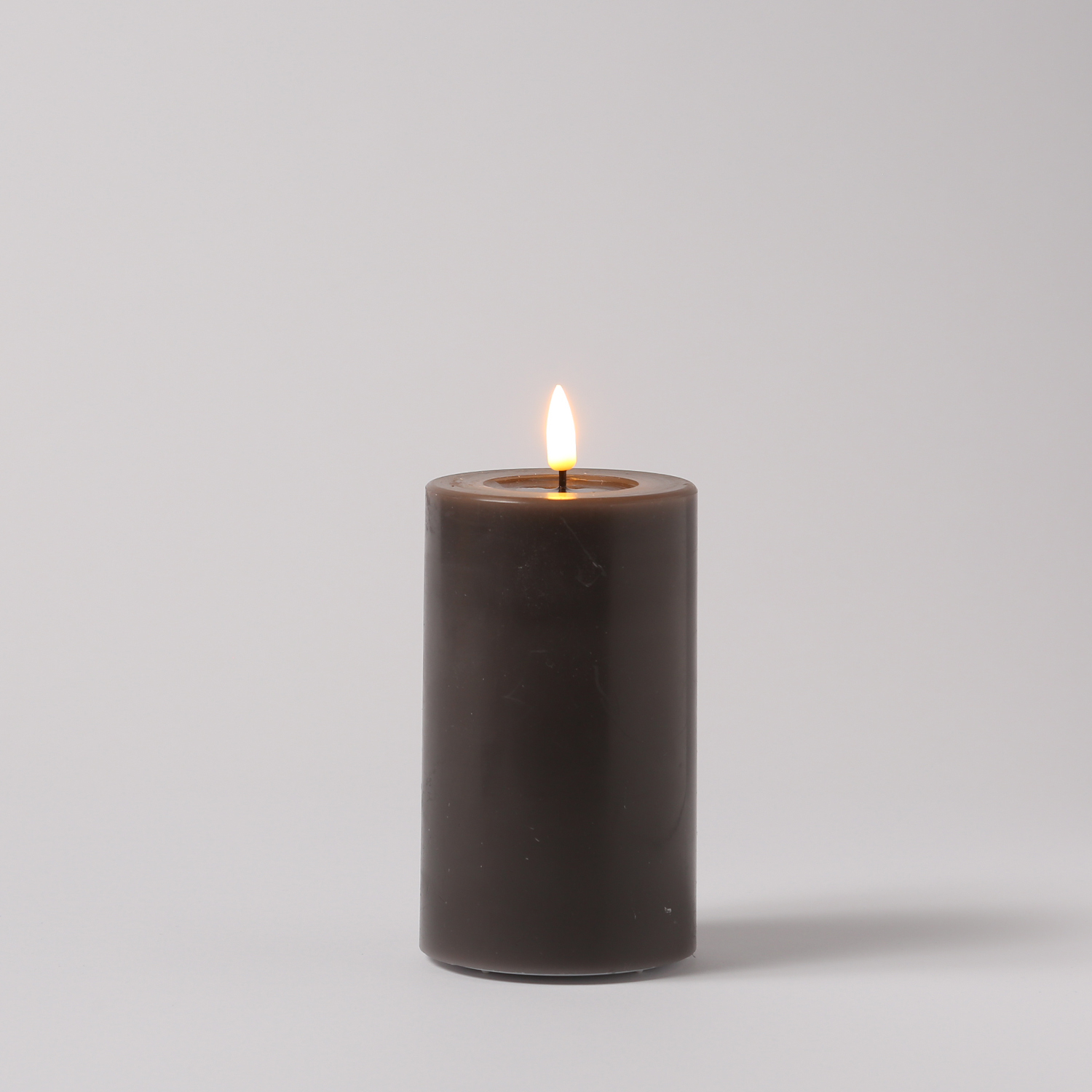 LED Stumpenkerze MIA - Echtwachs - realistische 3D Flamme - H: 12,5cm - D: 7,5cm - mokkafarben