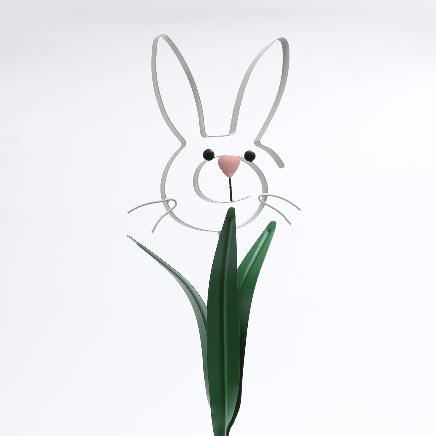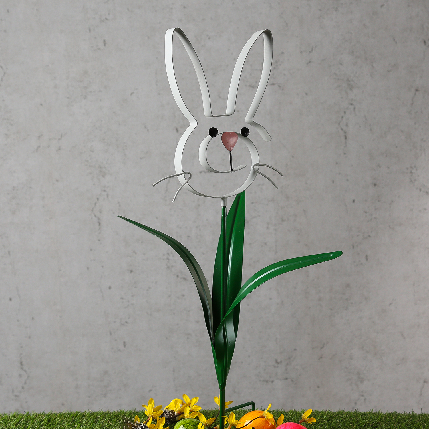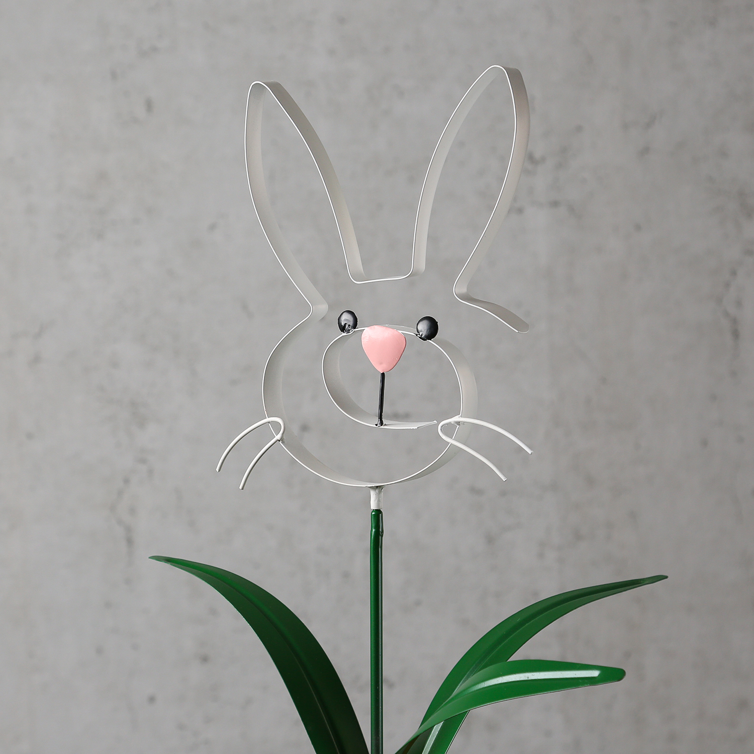Dieser lustige Gartenstecker Osterhase ist genau das Richtige für den Frühling. Der weiße Hase BUNNY schaut verschmitzt hinter einem Grasbüschel hervor. Vermutlich ist er gerade fertig mit dm Verstecken der Eier und möchte den Kids beim Suchen zusehen.