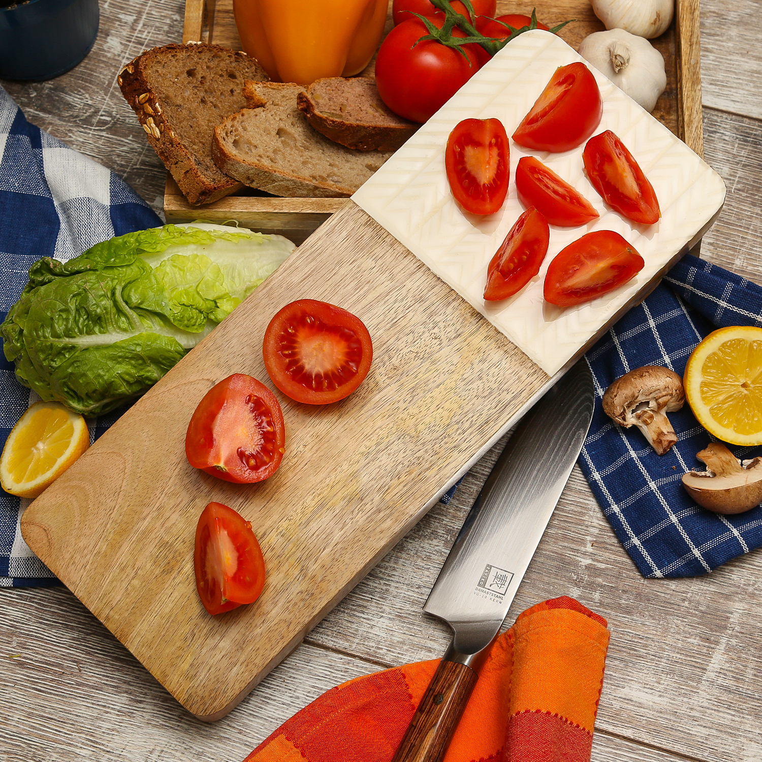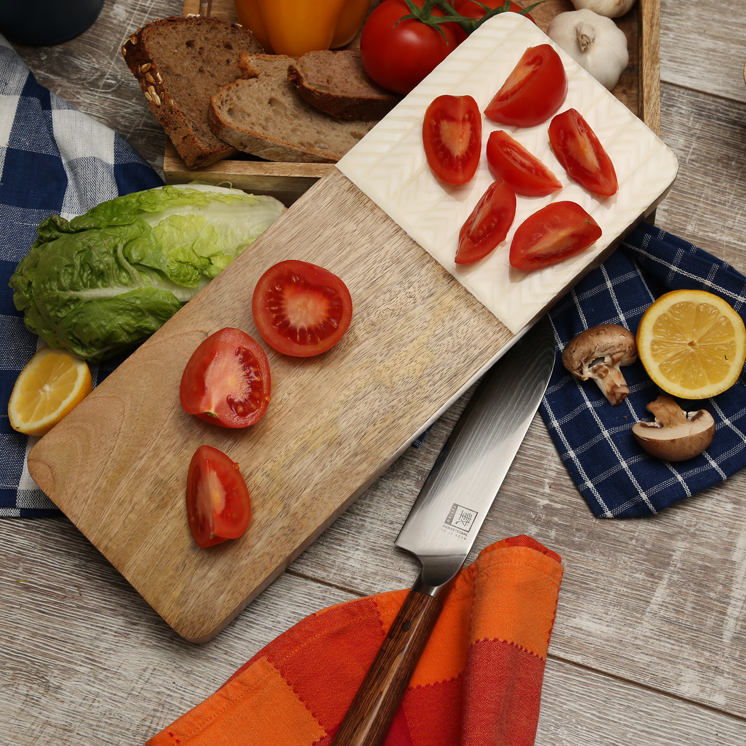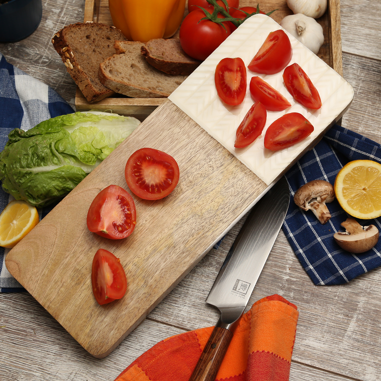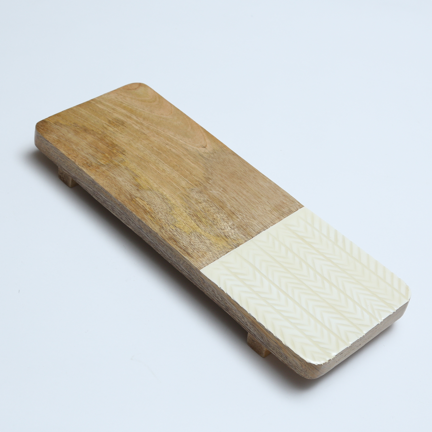 Holztablett - Serviertablett - Dekotablett - rechteckig - Mangoholz - L: 40cm B: 15cm - natur, weiß