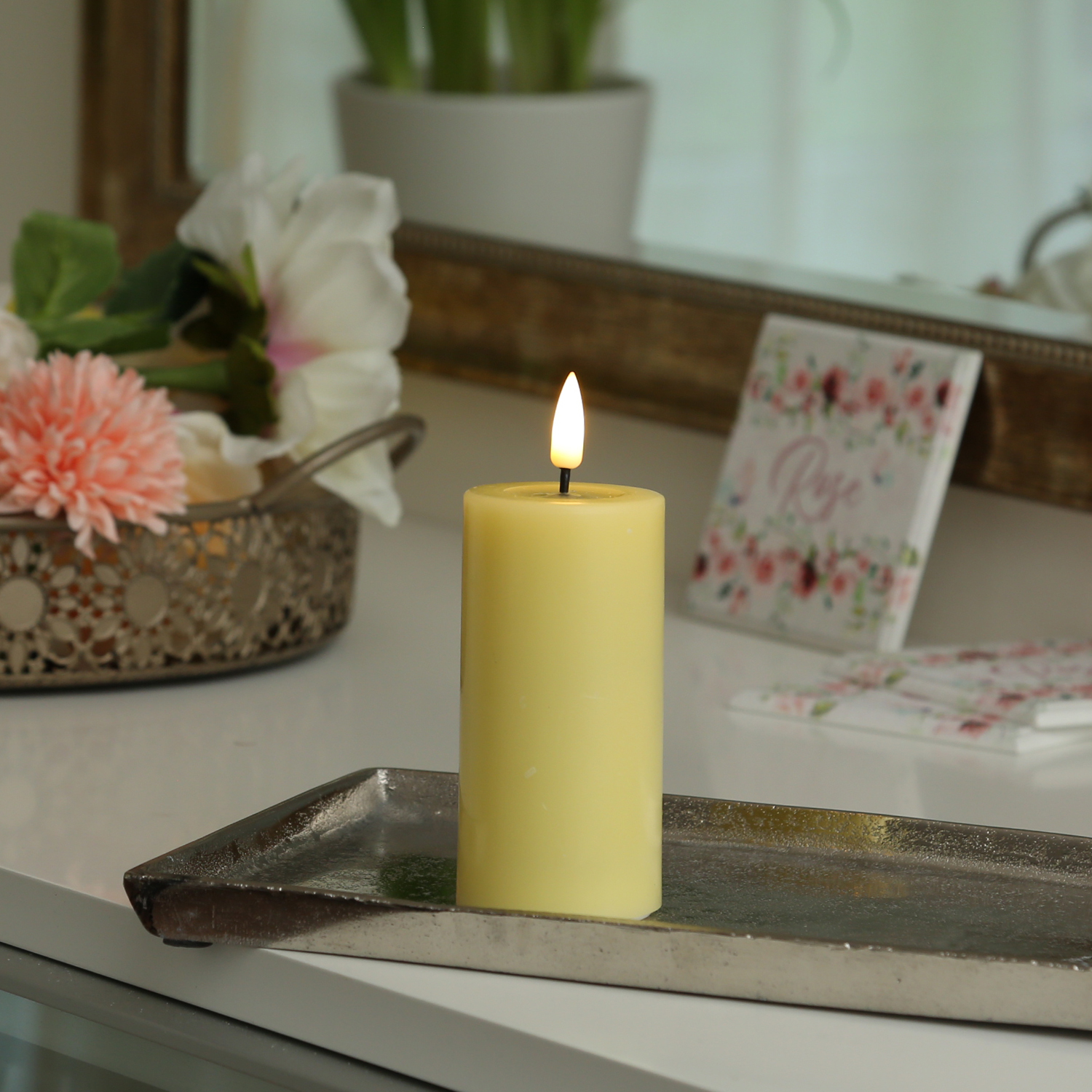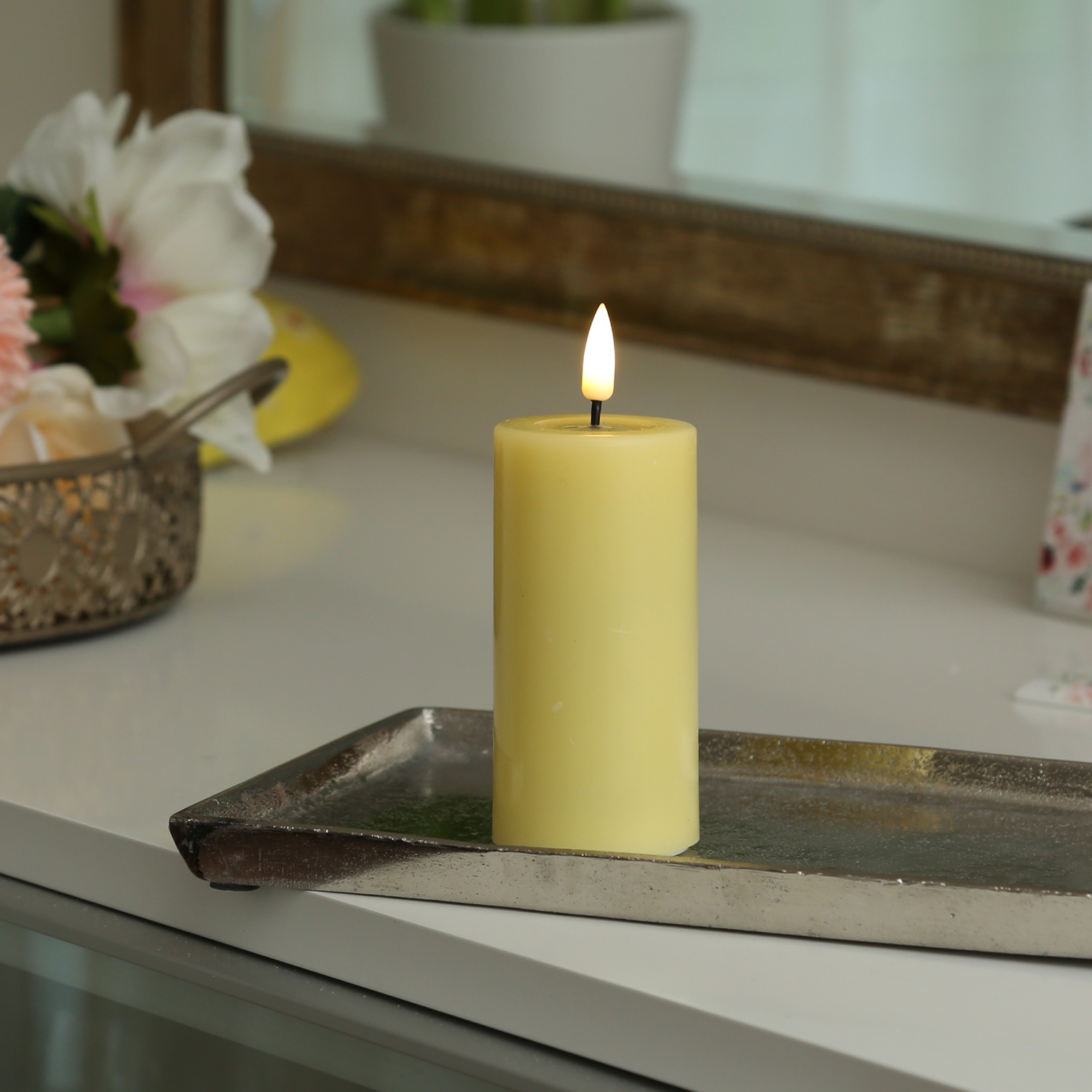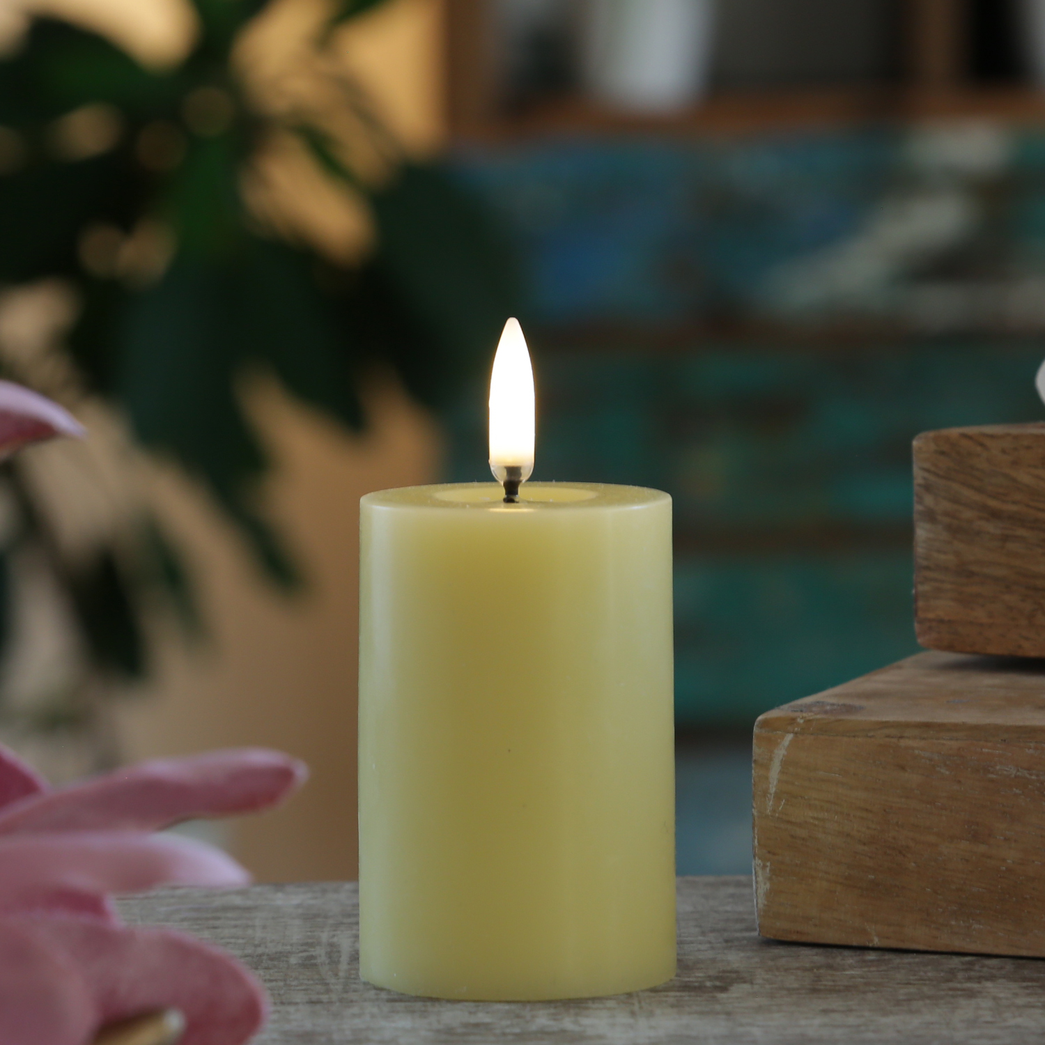 LED Stumpenkerze MIA - Echtwachs - realistische 3D Flamme - H: 10cm - D: 5cm - Batterie - gelb