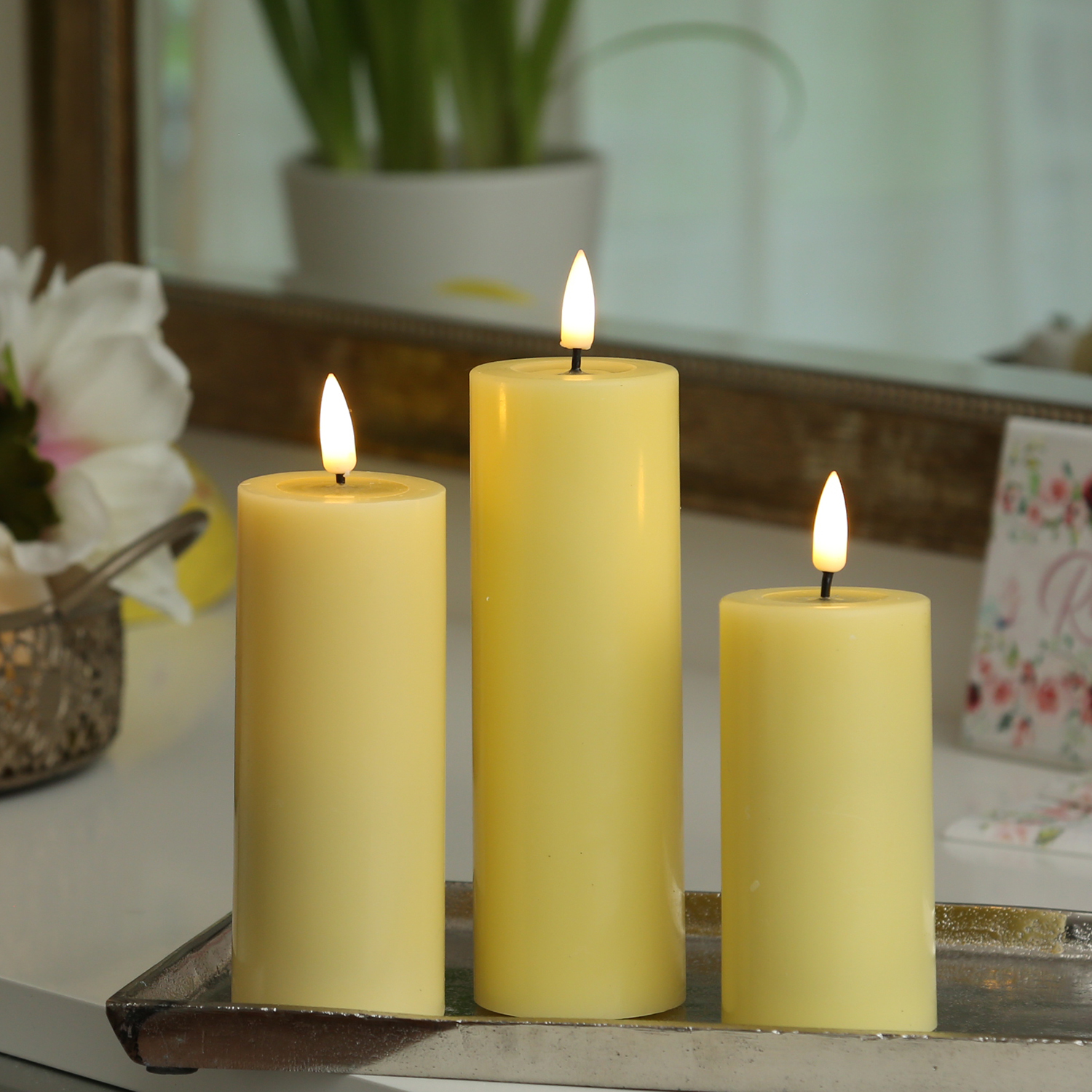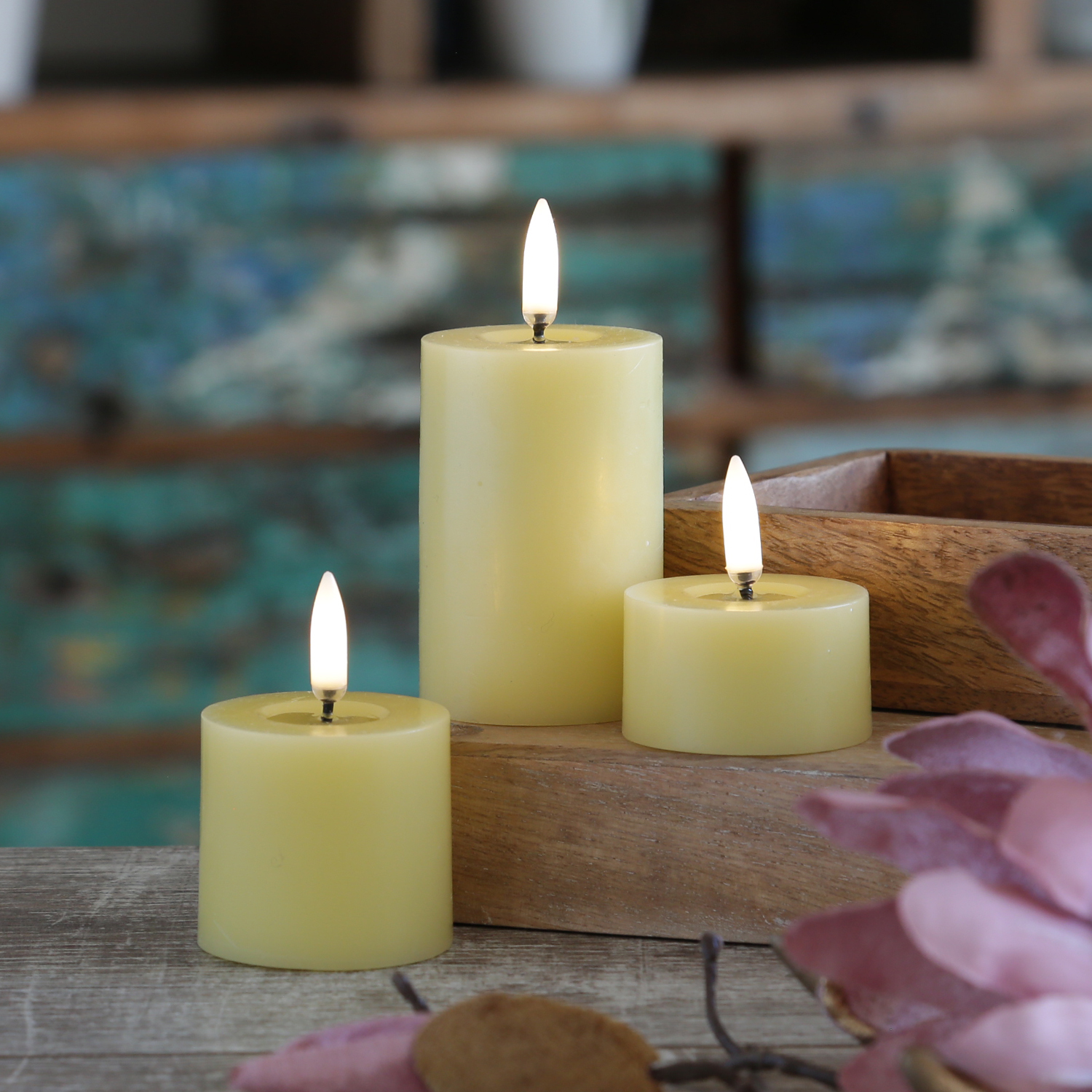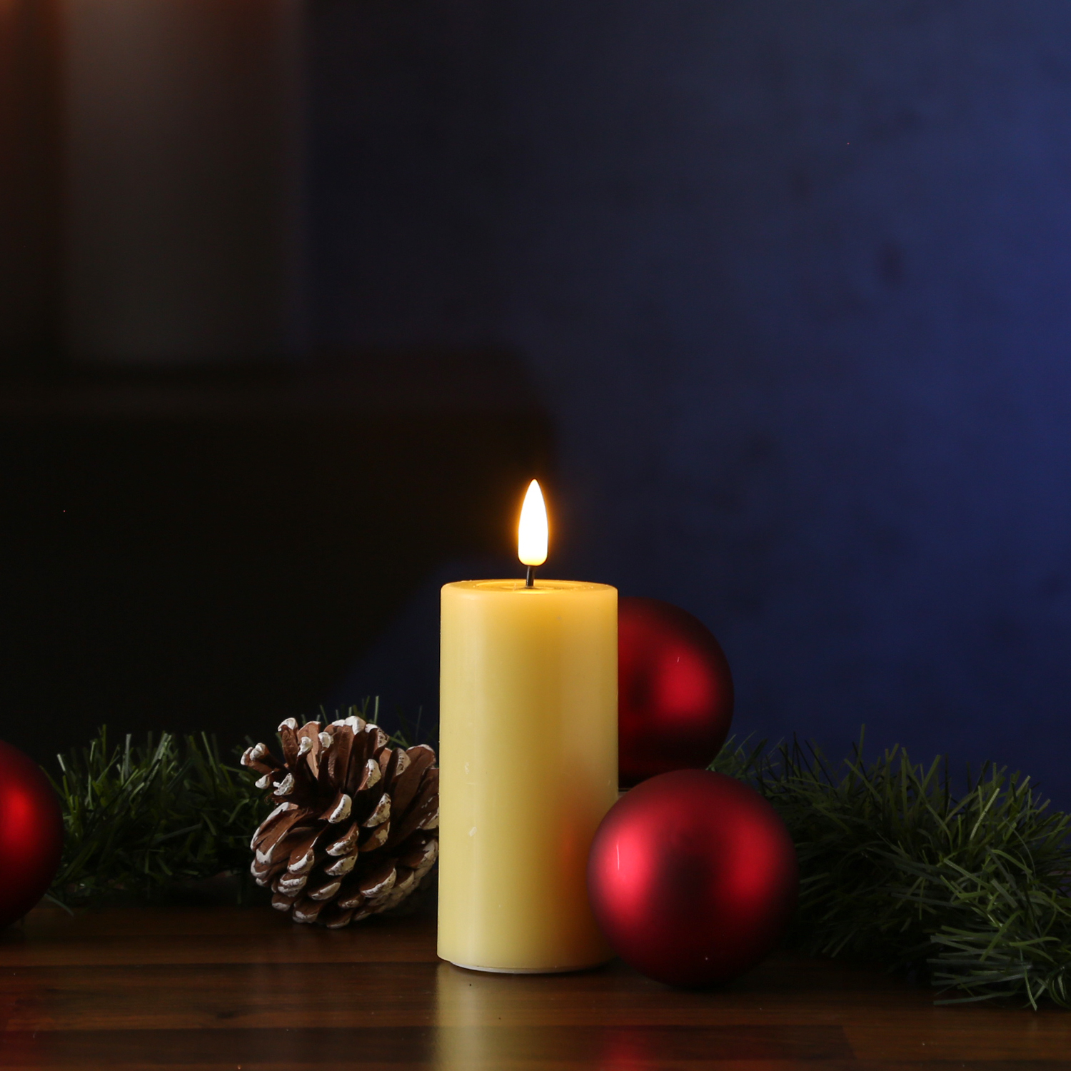 LED Stumpenkerze MIA - Echtwachs - realistische 3D Flamme - H: 10cm - D: 5cm - Batteriebetrieb - gelb
