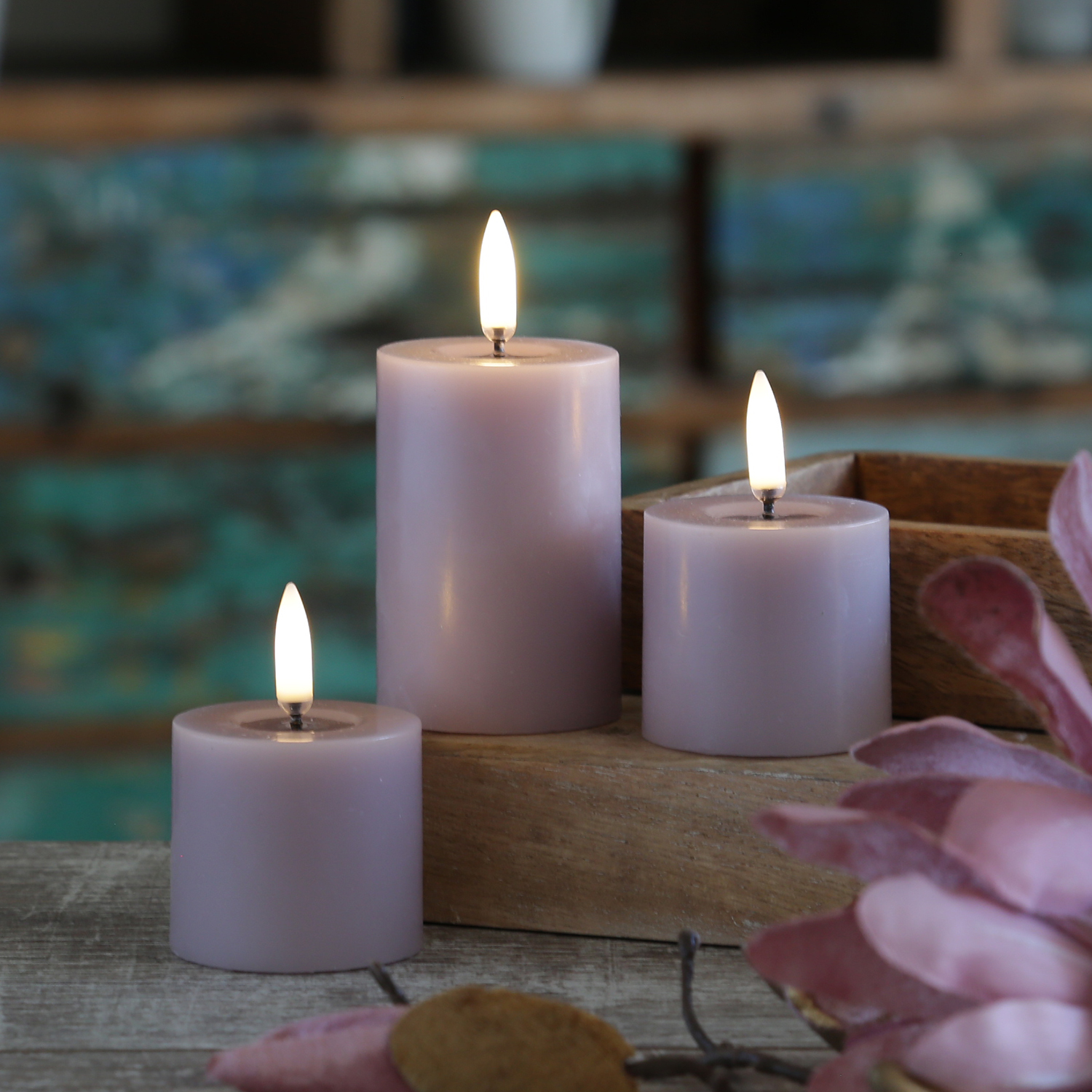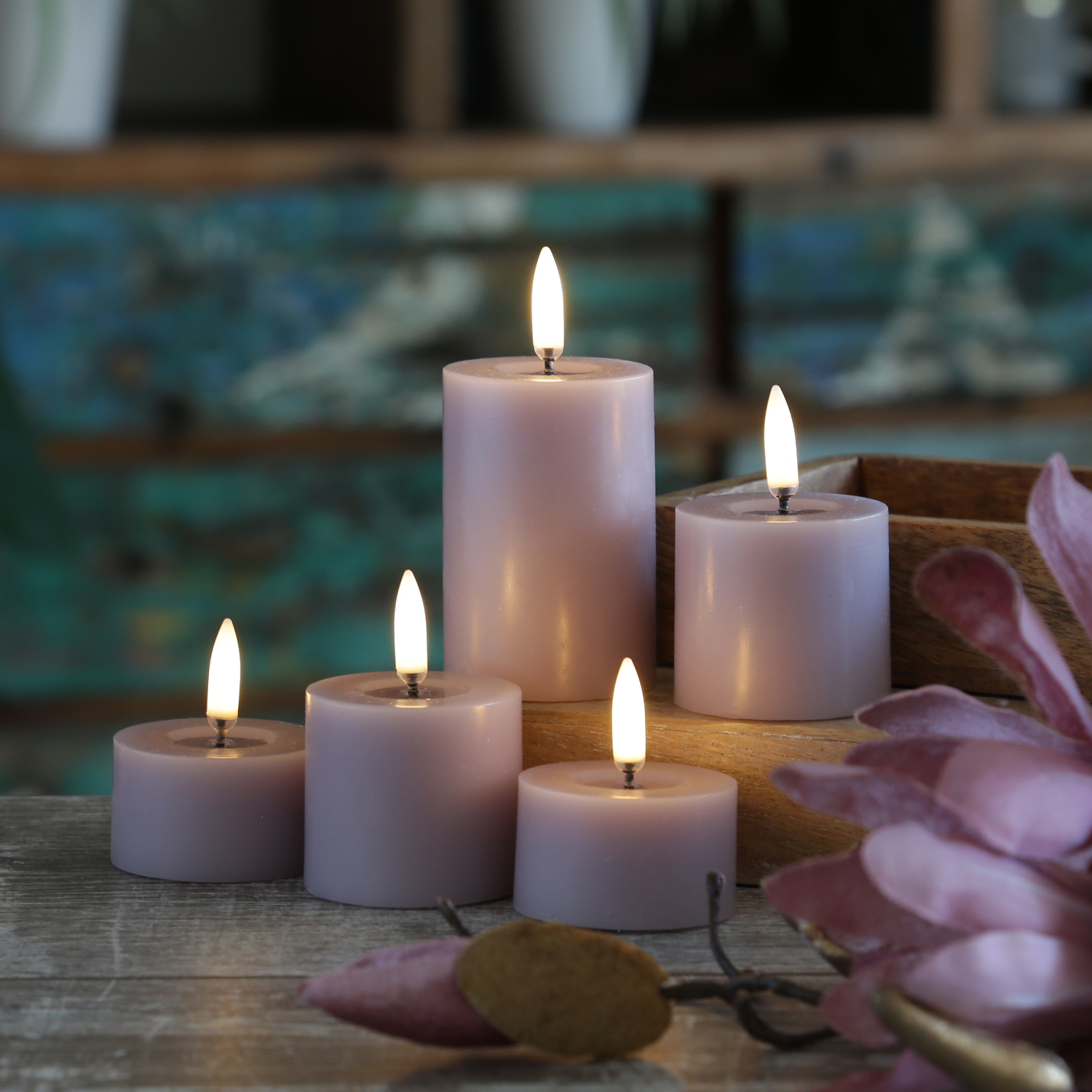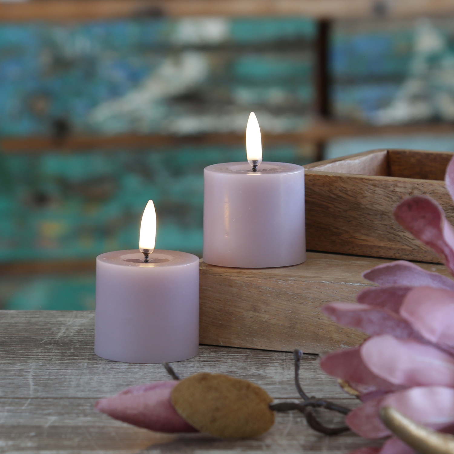 LED Mini Kerze THEA - Echtwachs - Wachsspiegel - D: 5cm - H: 4,5cm - Timer - flieder