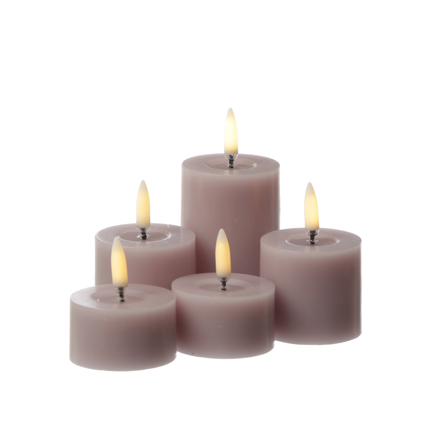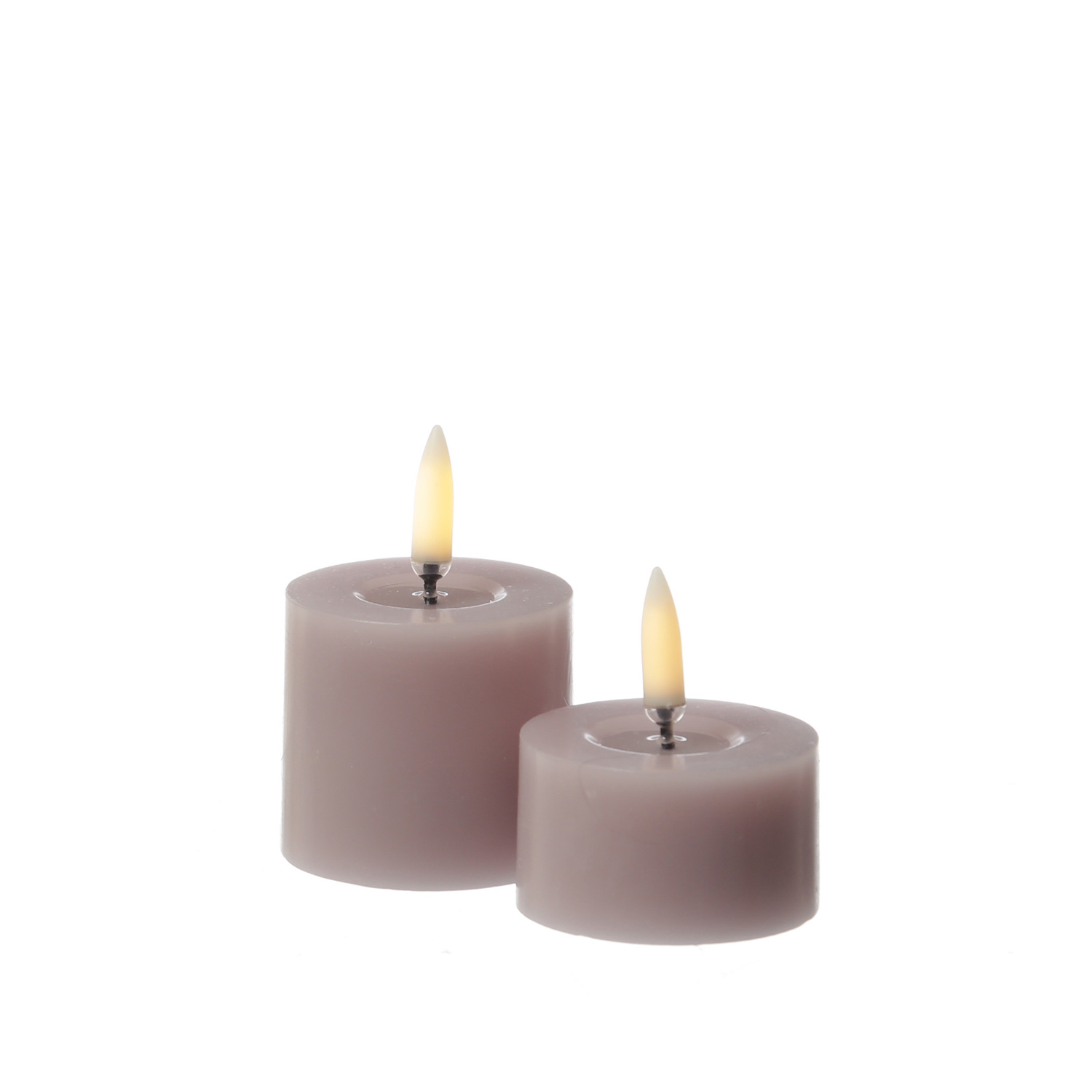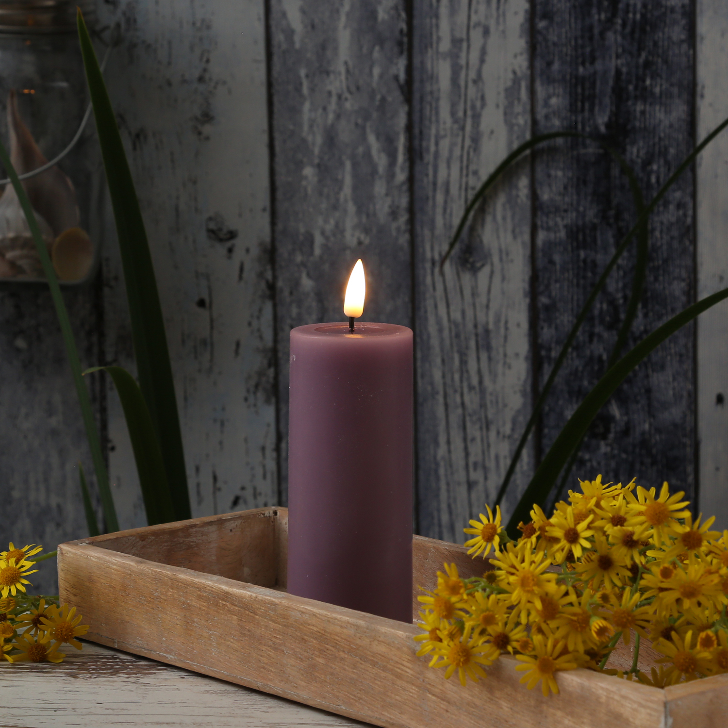 LED Mini Kerze THEA - Echtwachs - 3D Flamme mit Wachsspiegel - D: 5cm - H: 4,5cm - Timer - flieder
