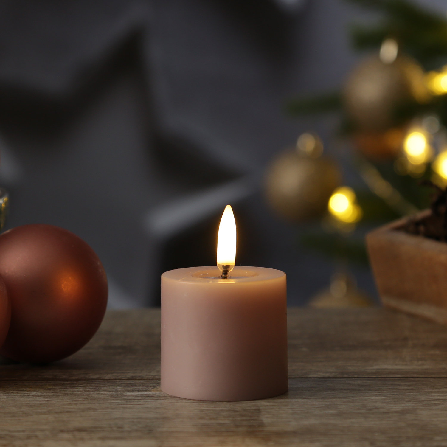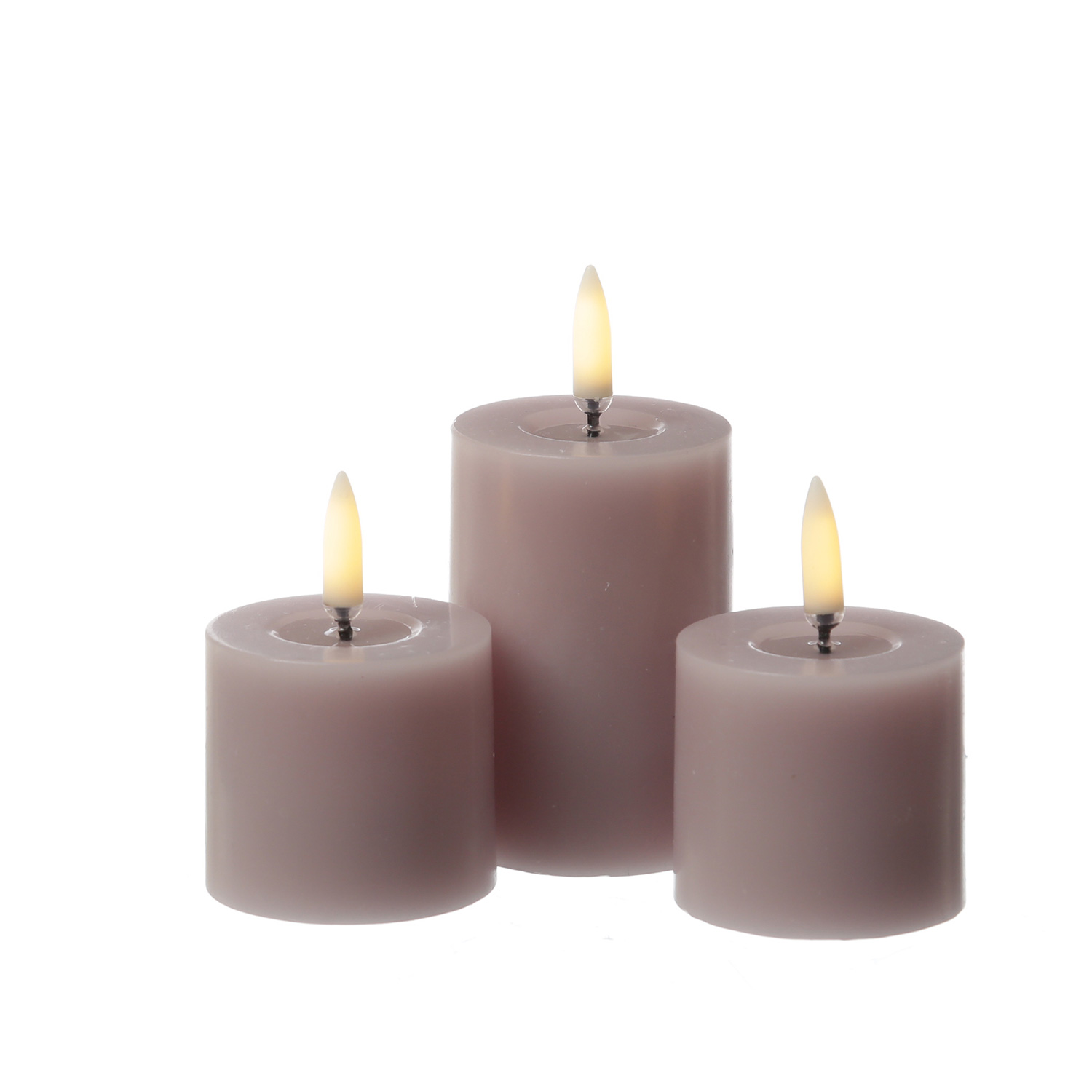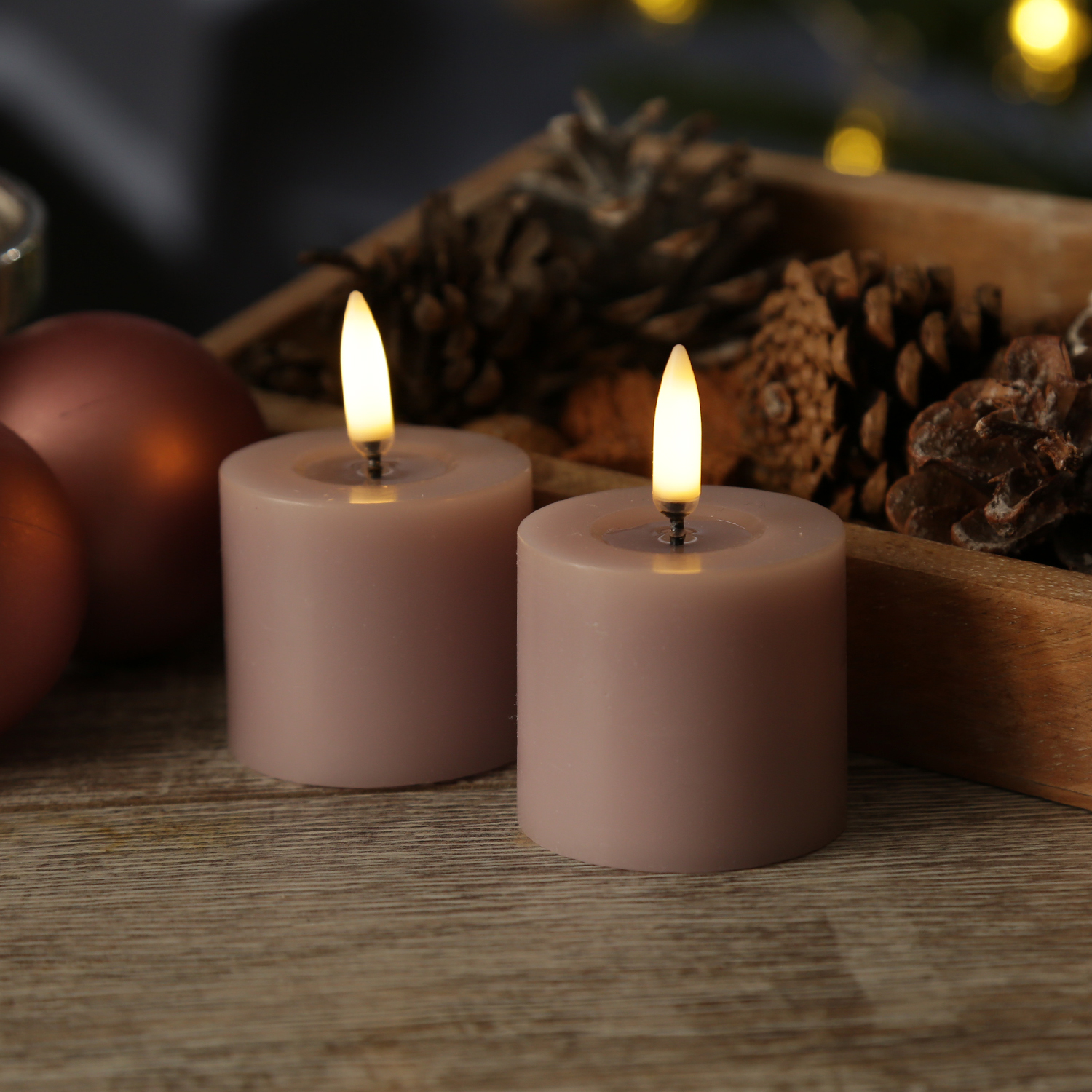 LED Mini Kerze THEA - Echtwachs - 3D Flamme mit Wachsspiegel - D: 5cm - H: 4,5cm - Timer - flieder